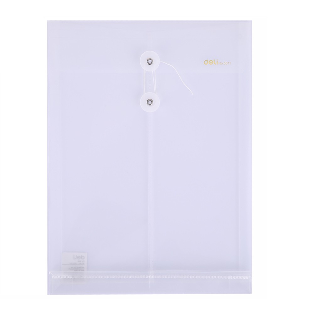得力Deli PP附繩立體A4直式文件袋-透明白(5511) PP資料袋 附繩 A4保護袋 立體文件袋 辦公室文件資料