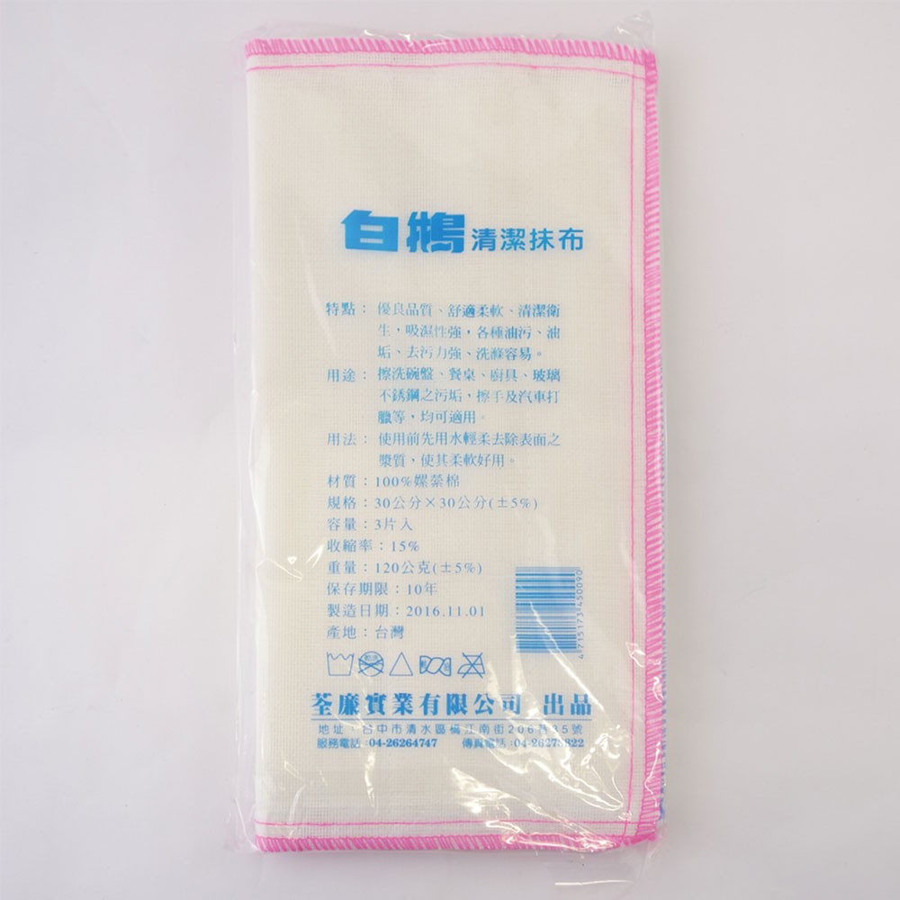 白鵝 抹布 清潔抹布 吸水抹布 居家清潔 5704 中 30x30cm 3條,包|史泰博EZ購