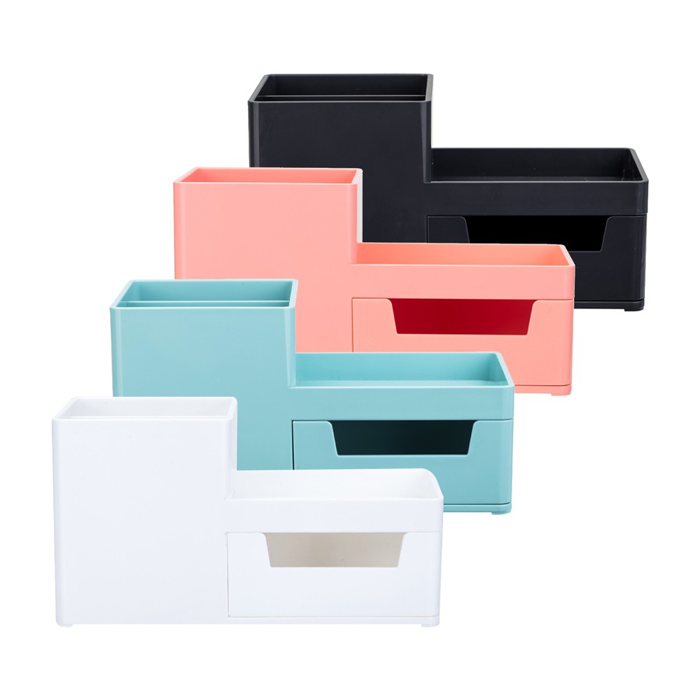 得力Deli 多功能收納盒 (8907) 白色 淺藍172x88x90mm 文具收納整理盒 簡約無印風格