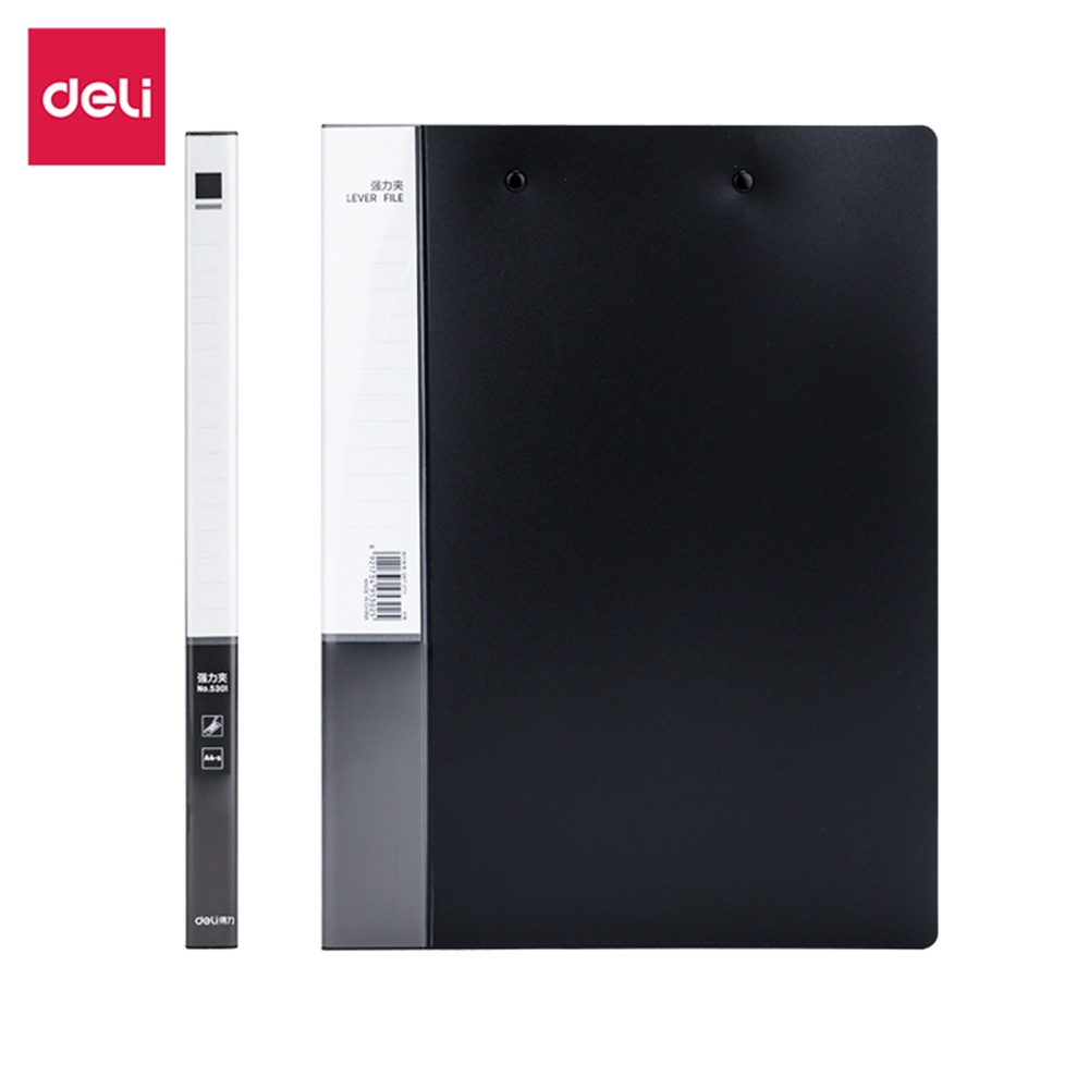 得力Deli PP右中強力A4 /背寬18mm/黑/藍(5301) 強力夾 彈力夾 輕便夾 檔案夾 公文夾