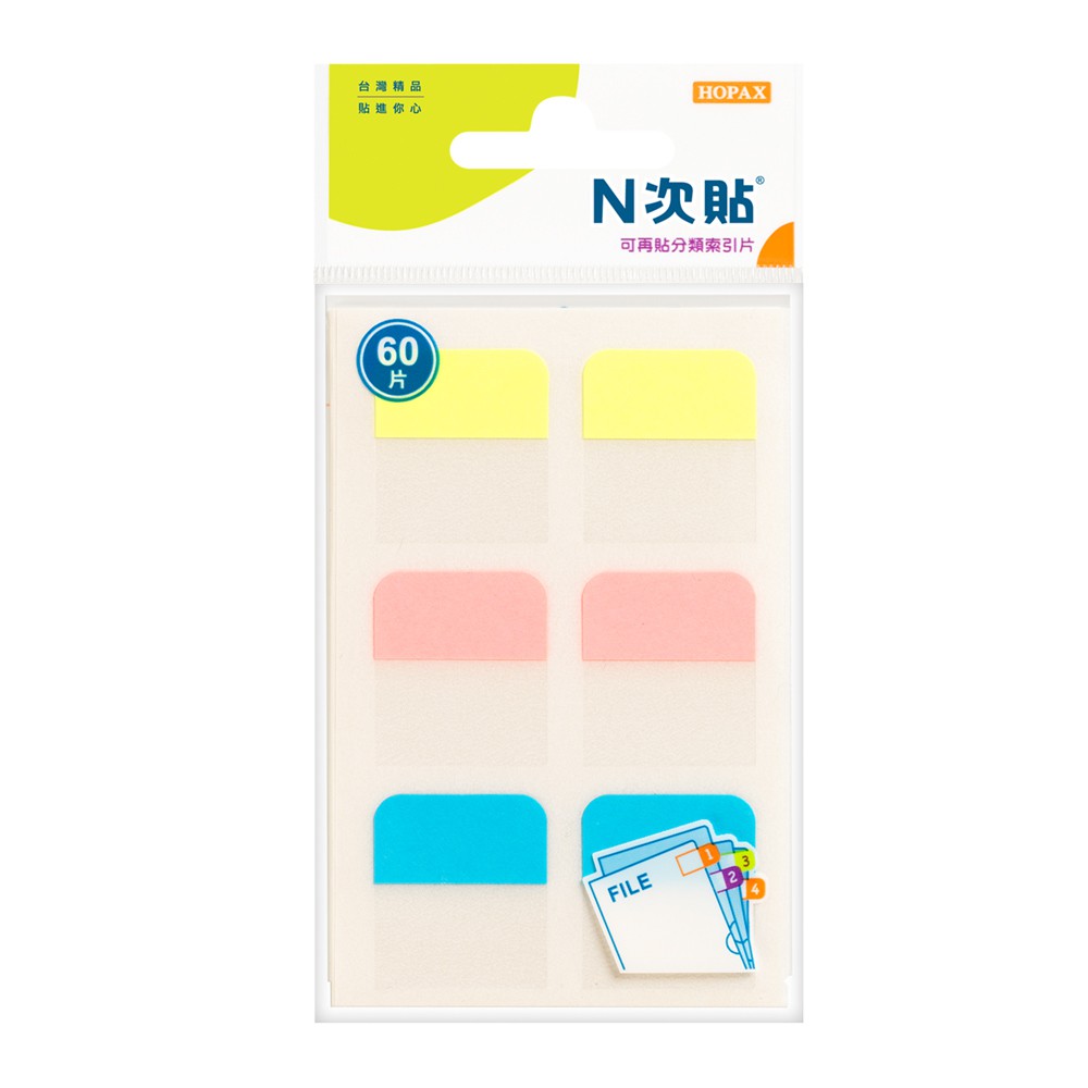 N次貼 可再貼分類索引片 備忘 檔案歸類 指示標示 便條紙 66514 66533 28x25mm 60片/包