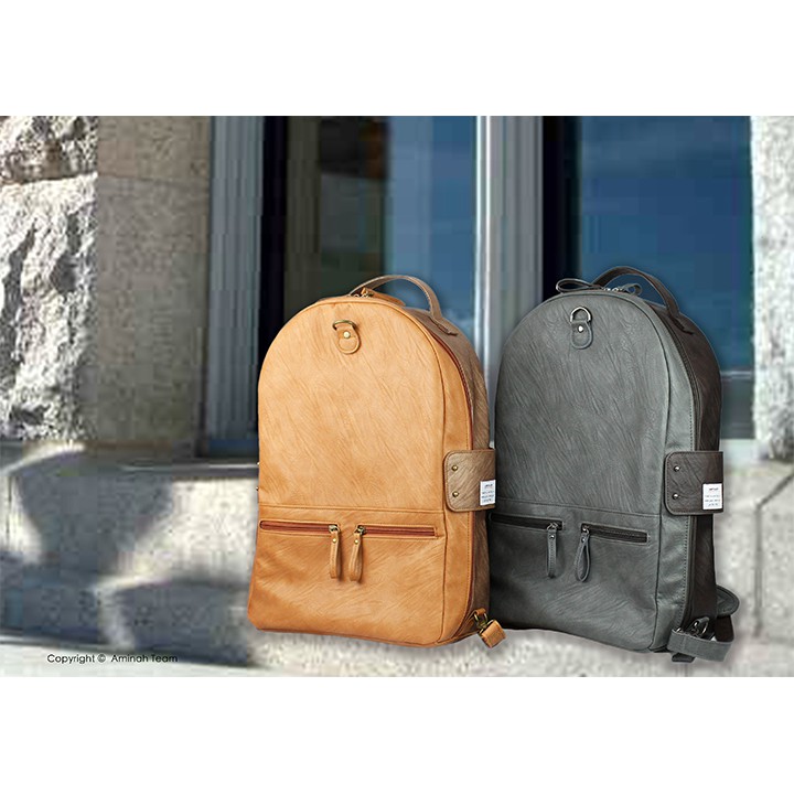 AMINAH 棕色系-雙面皮革後背包【am-0307】