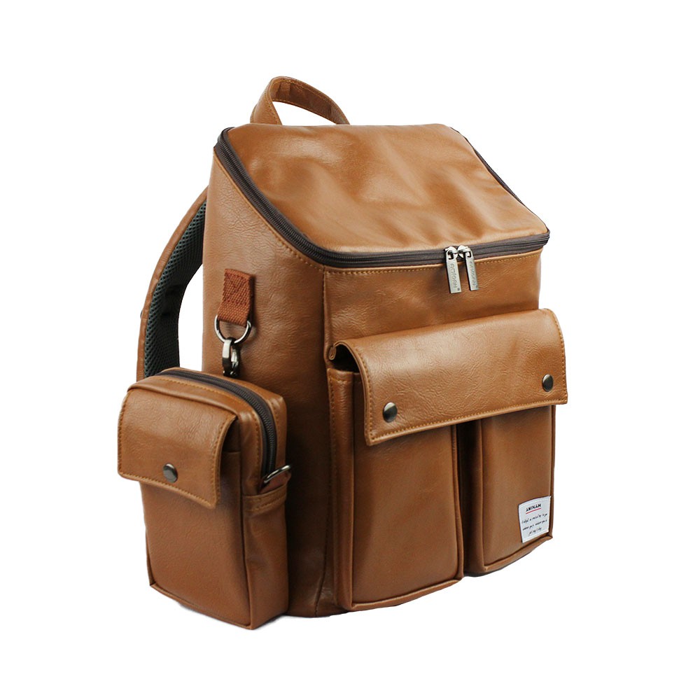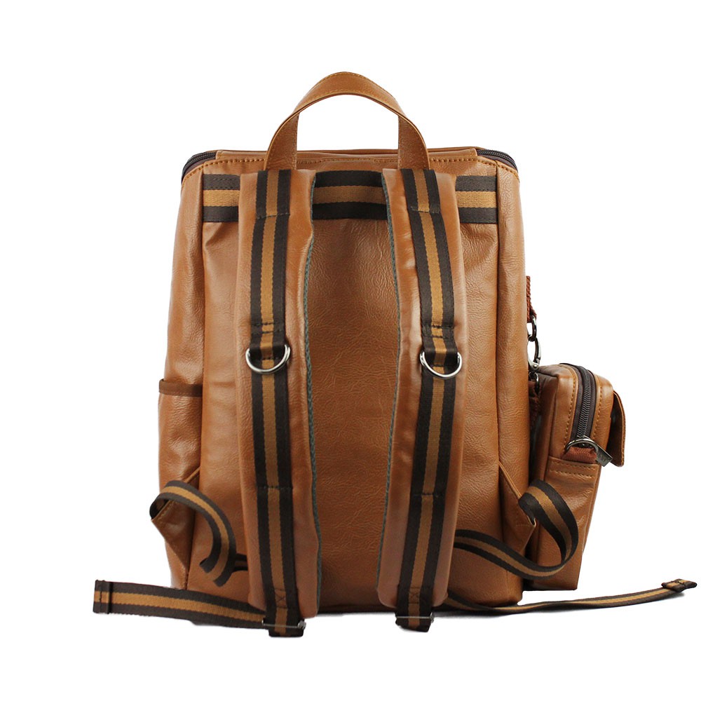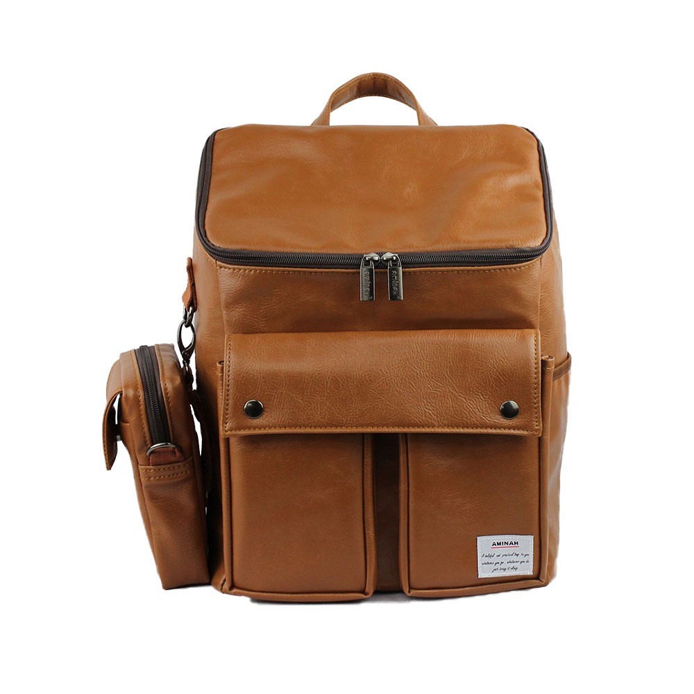 AMINAH 棕色-英倫復古後背包【am-0303】