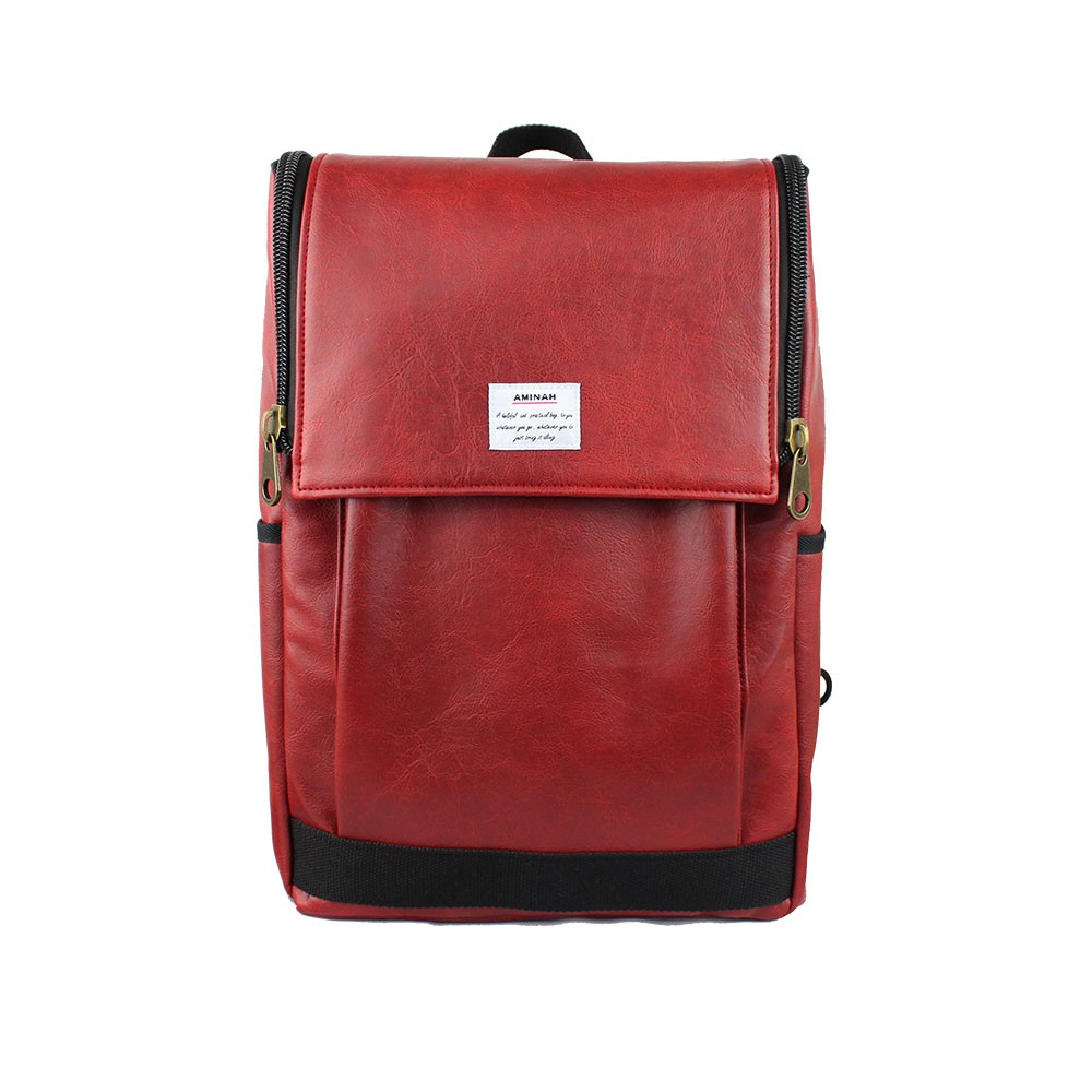 AMINAH 紅色-個性皮革後背包【am-0295】