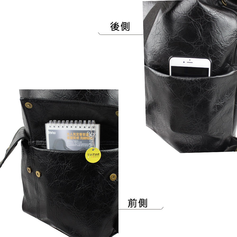AMINAH 米黃-束口皮革後背包【am-0293】