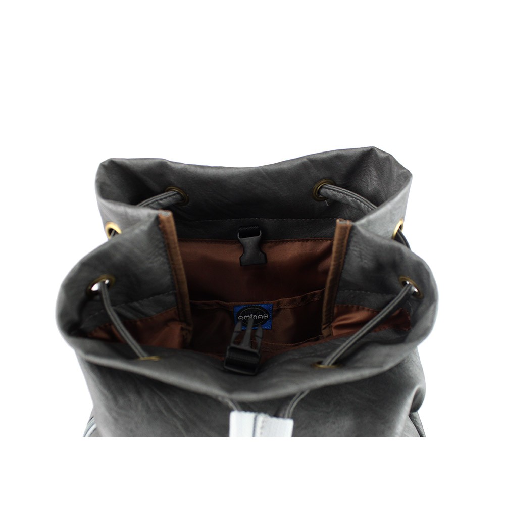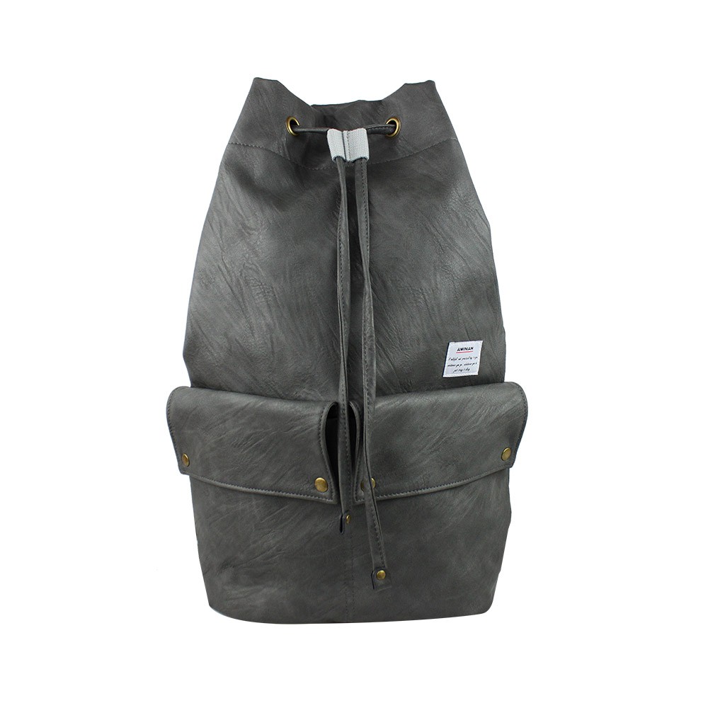 AMINAH 灰色-束口皮革後背包【am-0293】