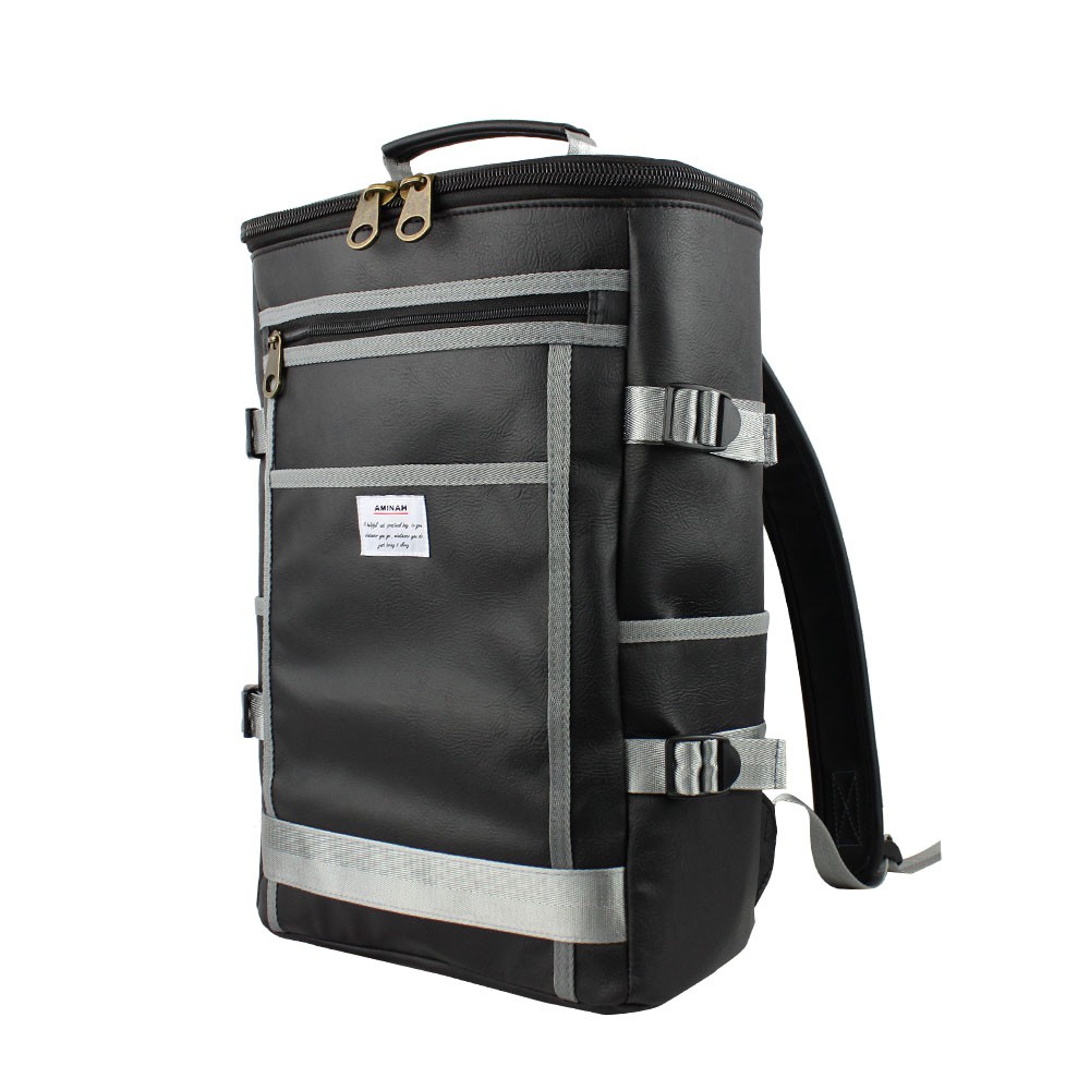 AMINAH 黑色-自信皮革後背包【am-0291】