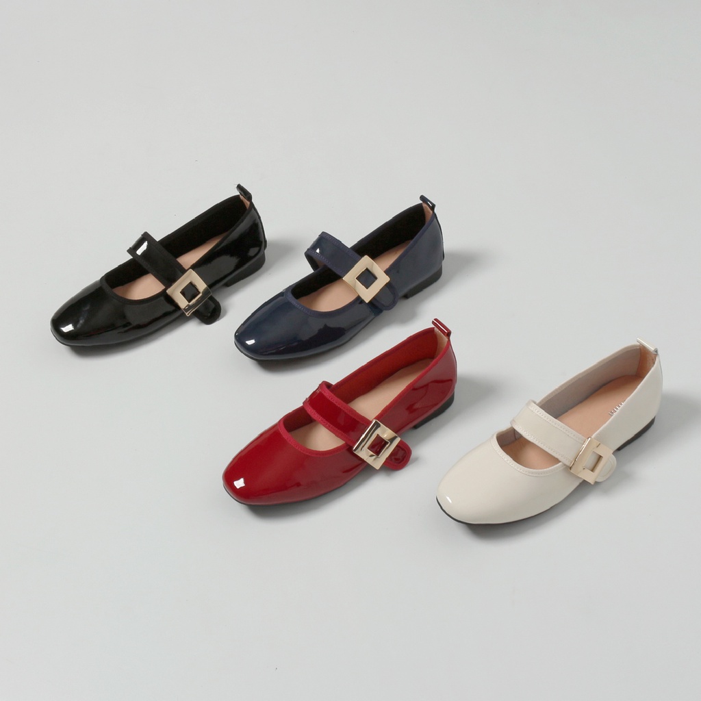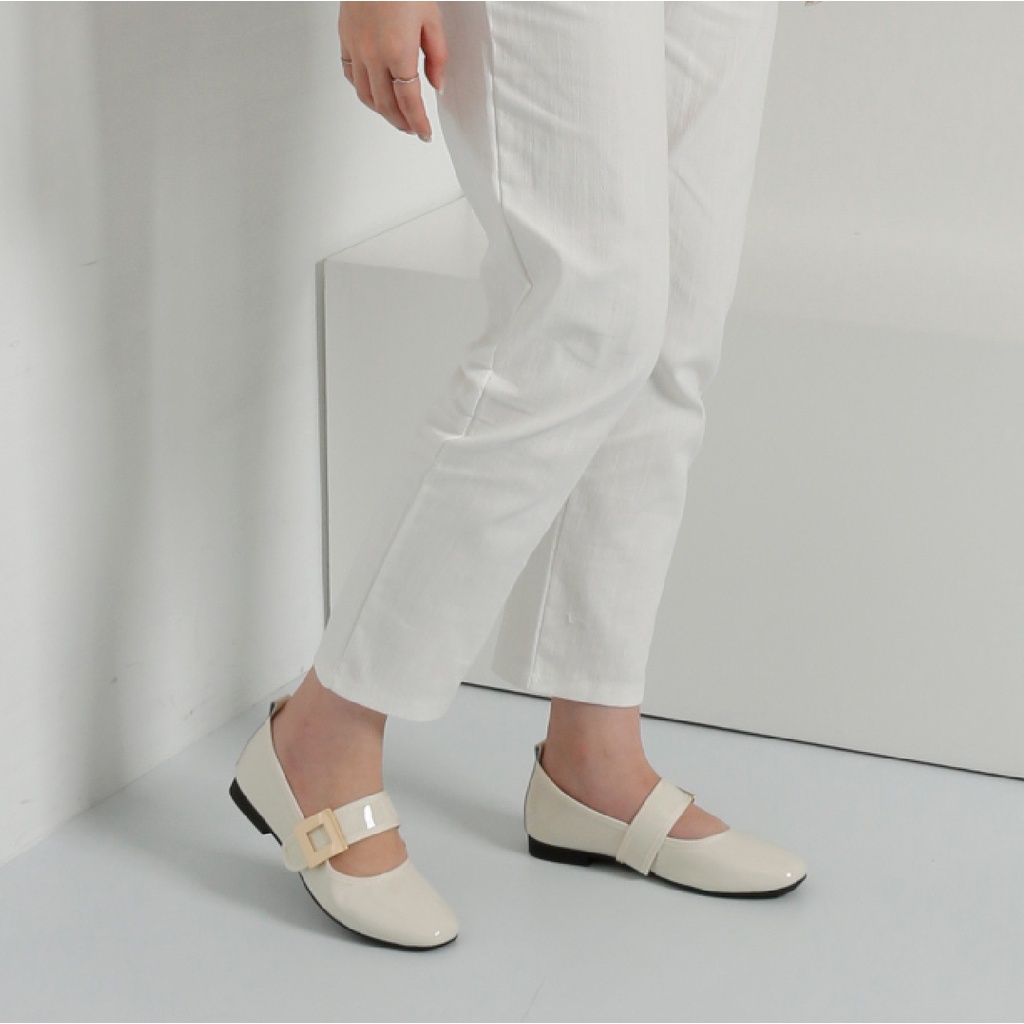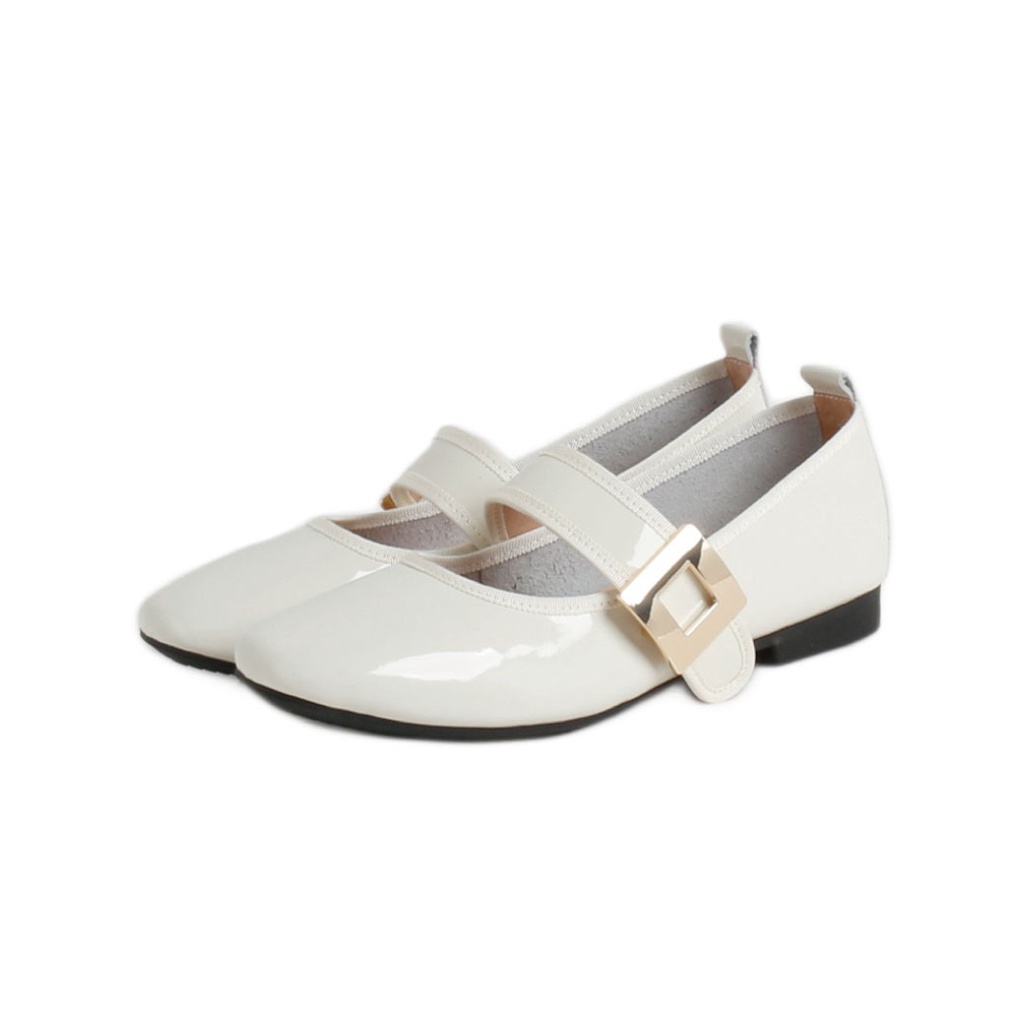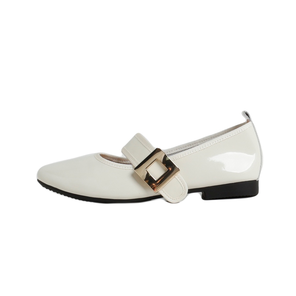 漆面牛皮寬帶魔鬼氈瑪麗珍鞋-米白