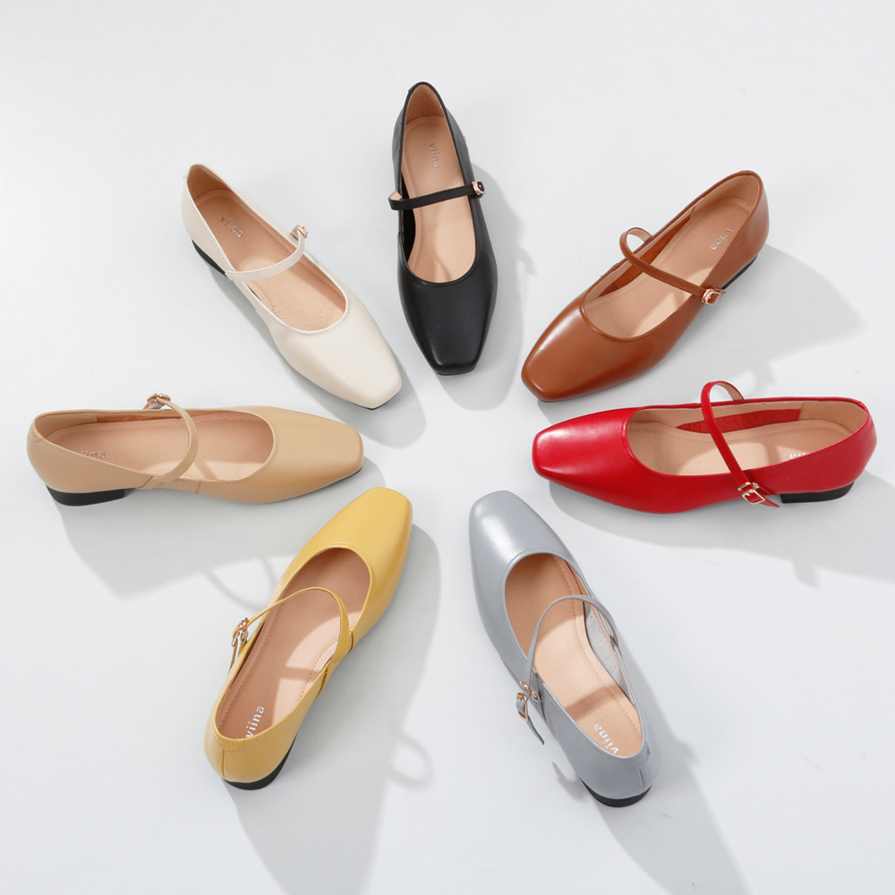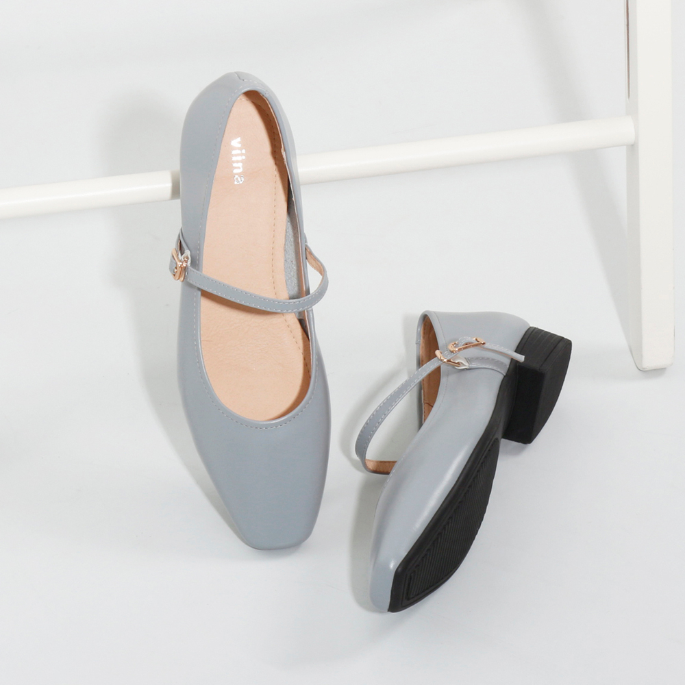Viina 素面細帶牛皮低跟瑪莉珍-淺藍