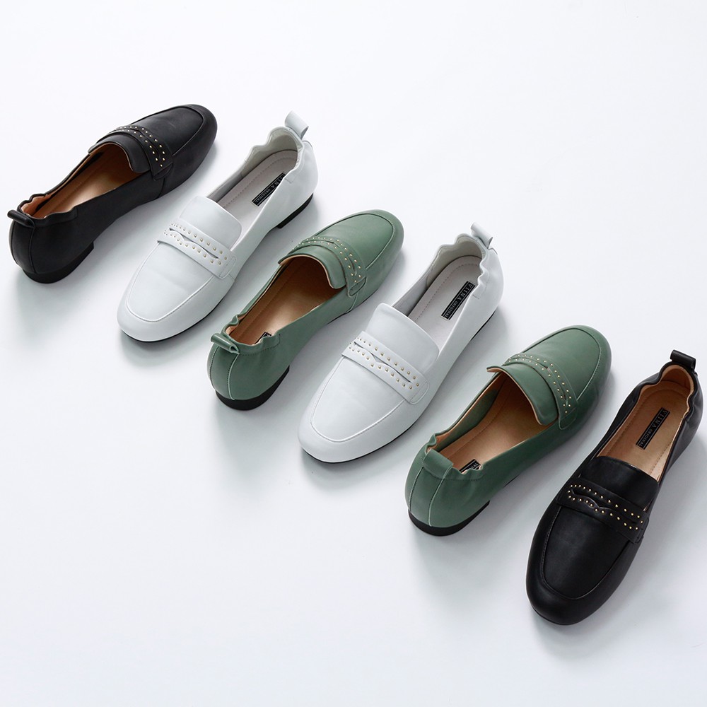 Viina 頂級羊皮抓皺樂福鞋-黑