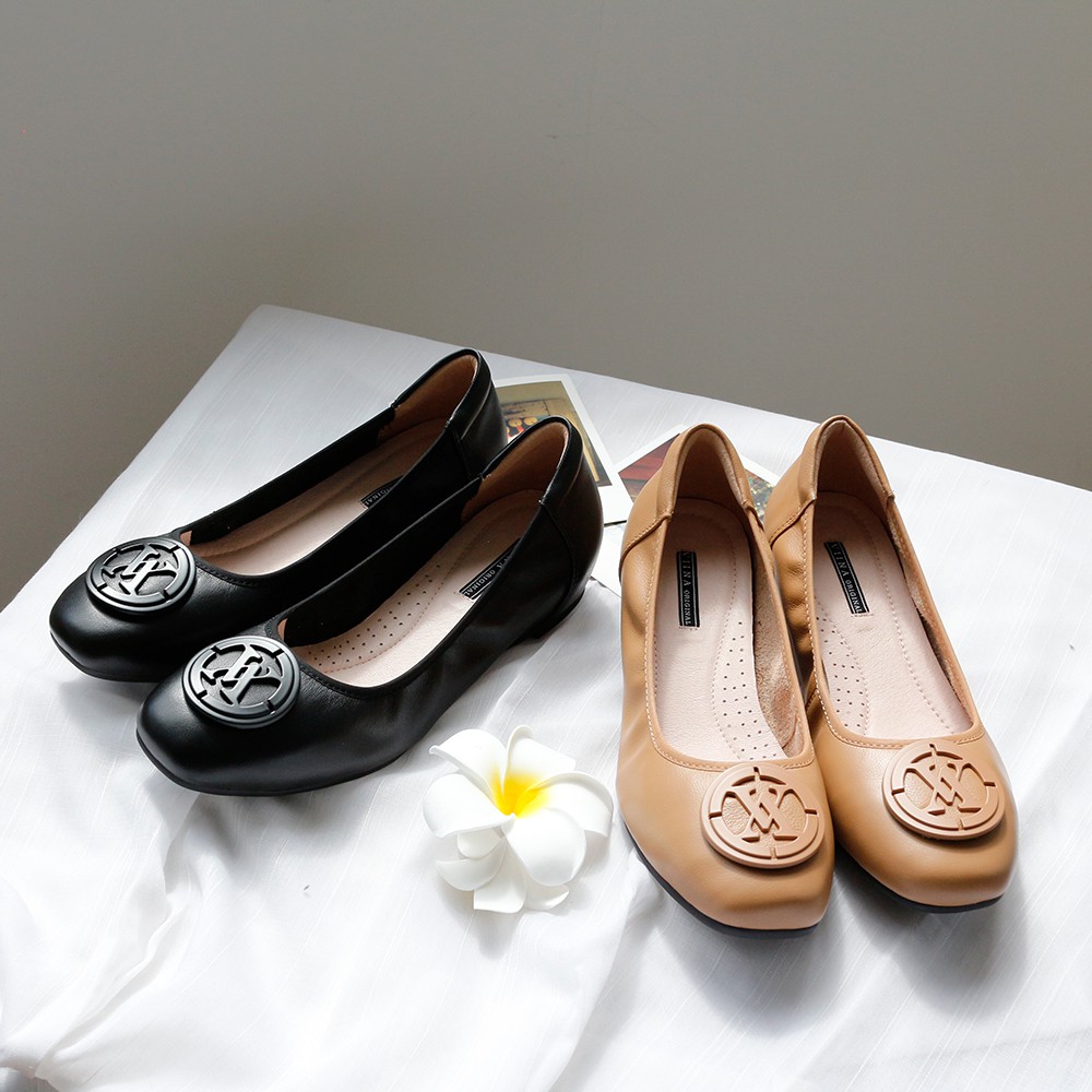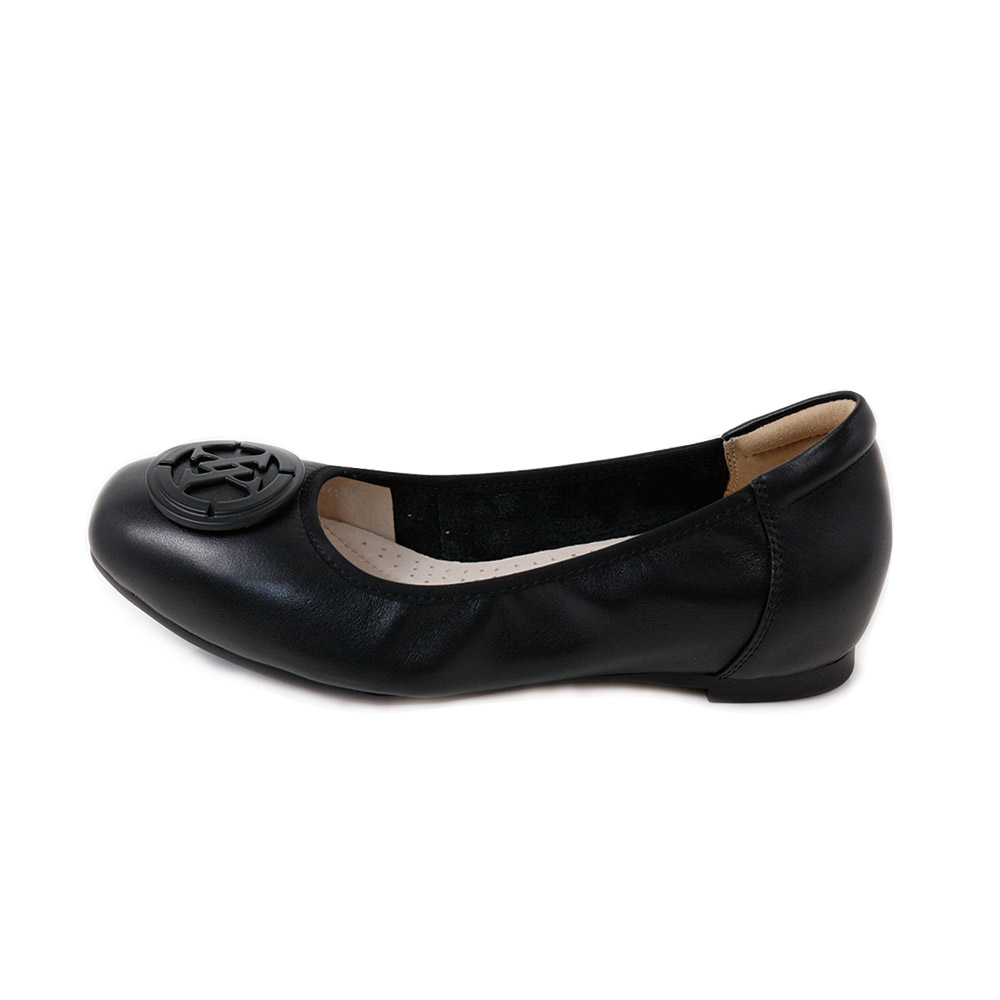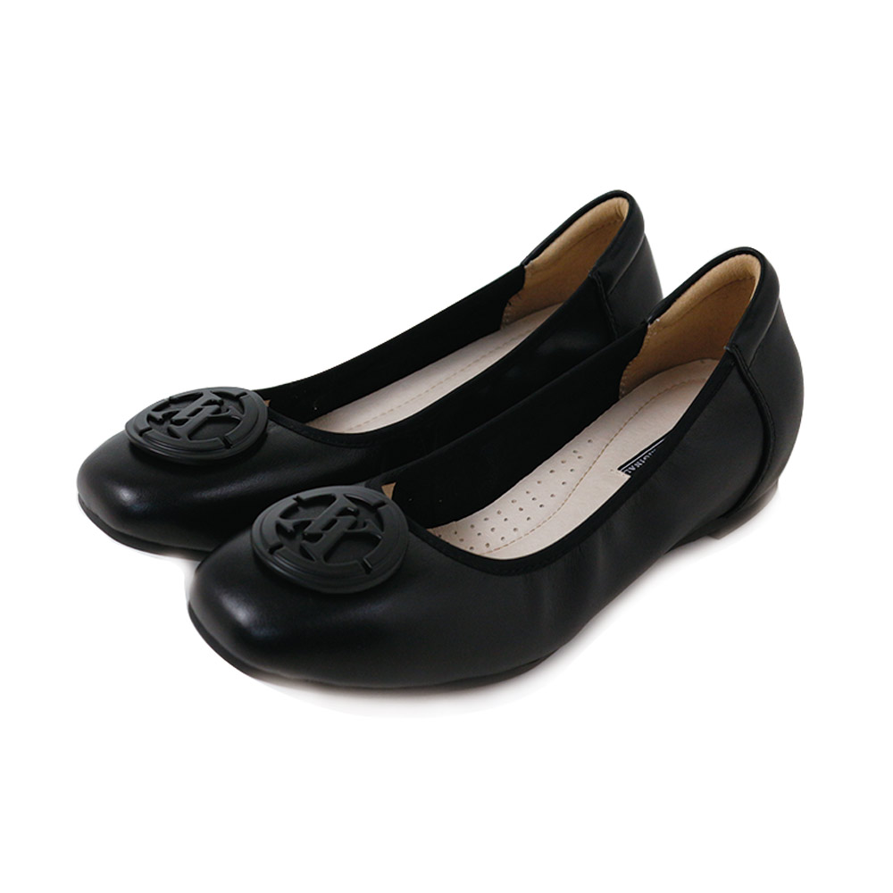 Viina 頂級牛皮.大LOGO方頭娃娃鞋-黑