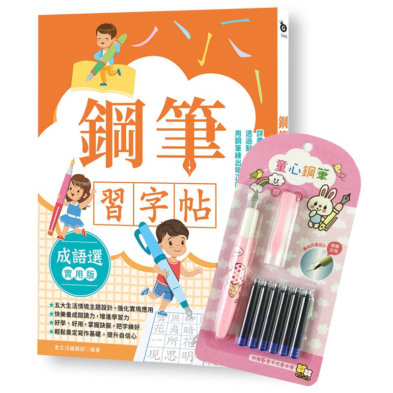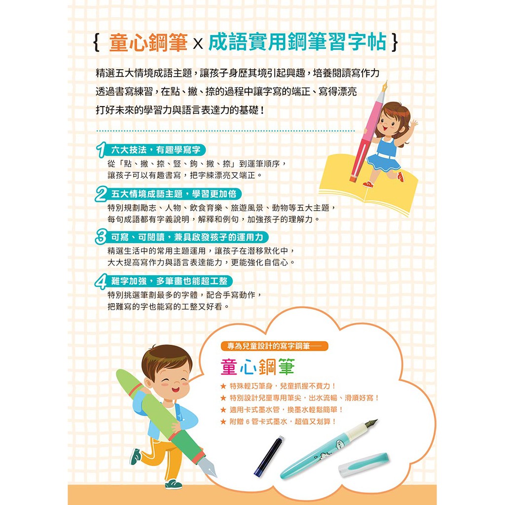 鋼筆習字帖-成語選(實用篇) 由成語入門,透過點、撇、捺等練習,把字變漂亮! (附童心鋼筆-甜蜜粉) / 大風文創wind wind