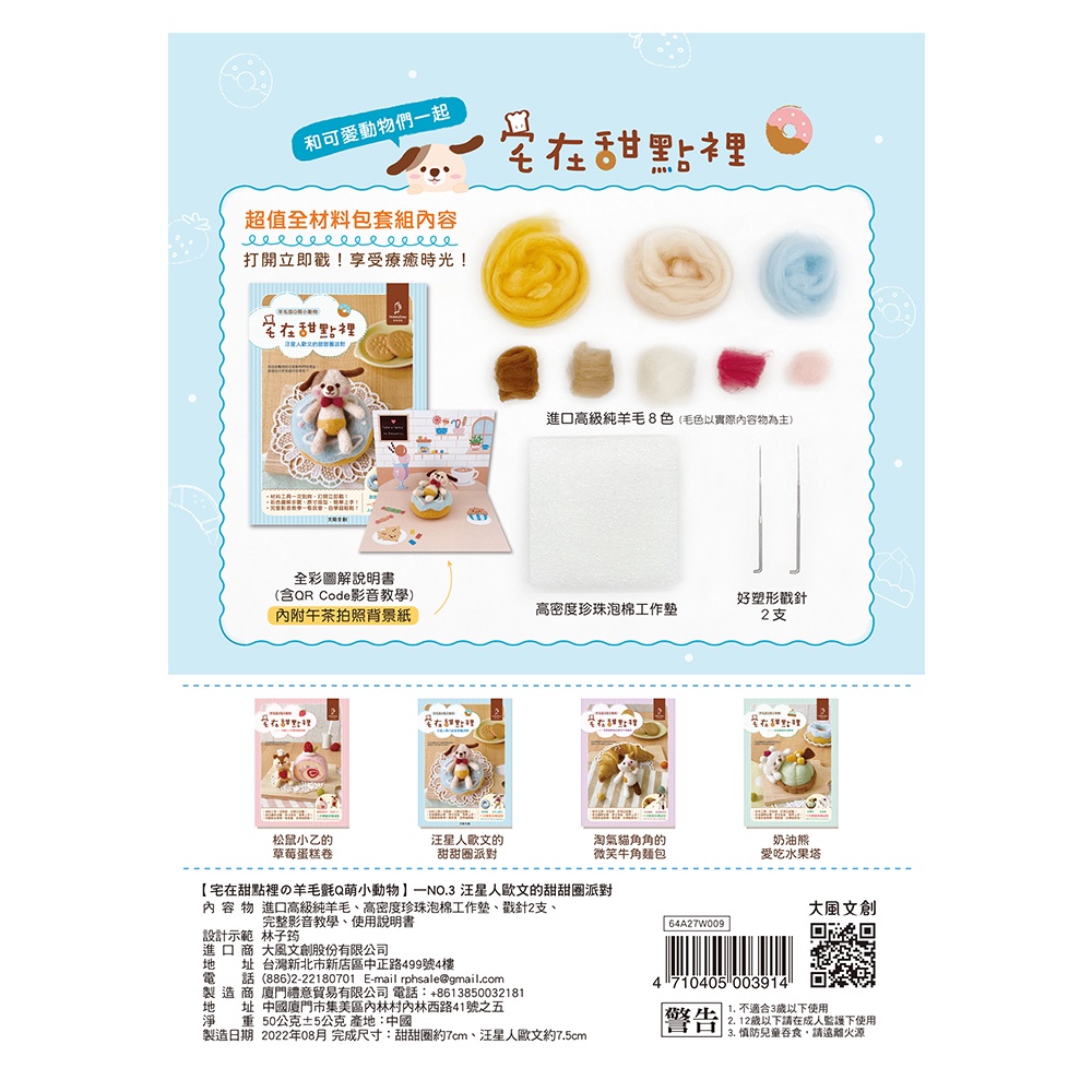 可愛無法擋!宅在甜點の羊毛氈Q萌小動物:汪星人歐文的甜甜圈派對(附羊毛氈超值全材料包套組)