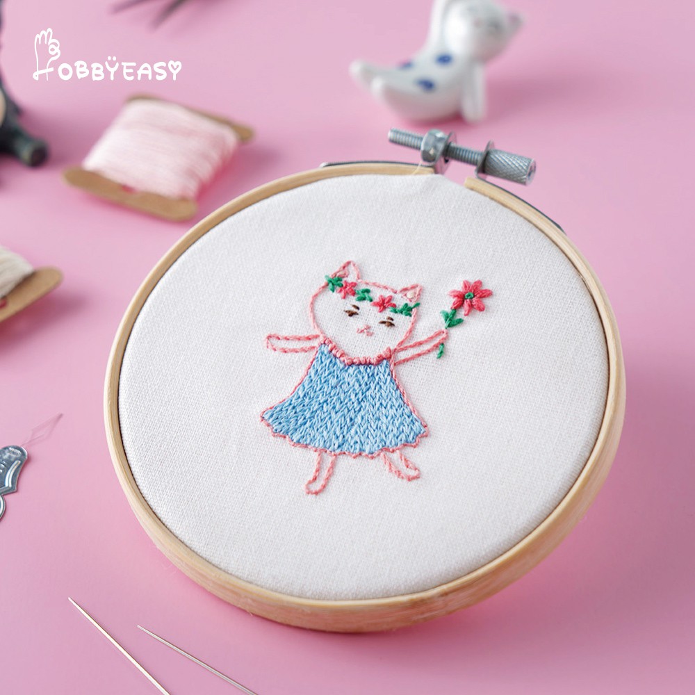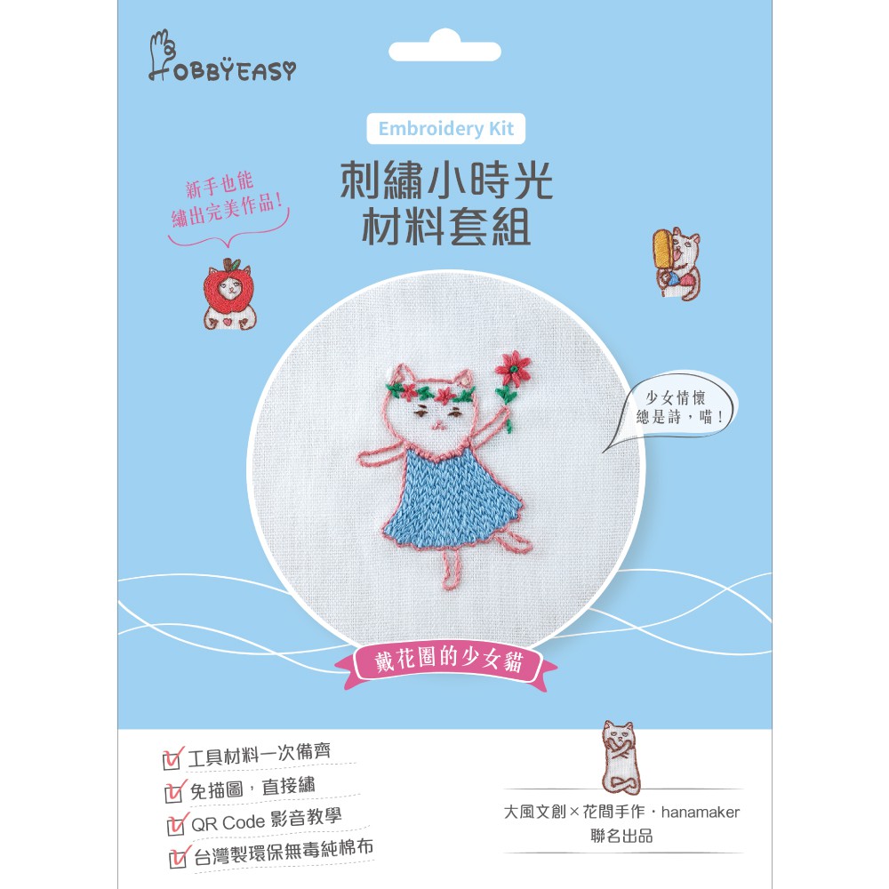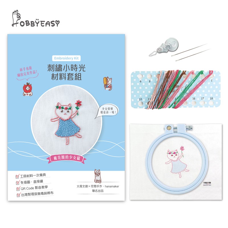 HOBBYEASY 刺繡小時光材料套組-戴花圈的少女貓【影片教學】 / 大風文創wind wind