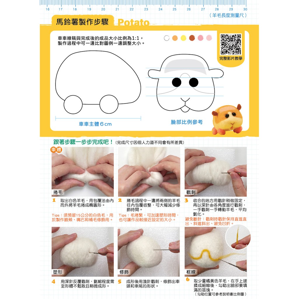 【正版授權+影片教學】《PUI PUI天竺鼠車車》羊毛氈材料套組:馬鈴薯 (含澳洲進口純羊毛+戳針+工作墊+8mm眼珠+ / 大風文創wind wind