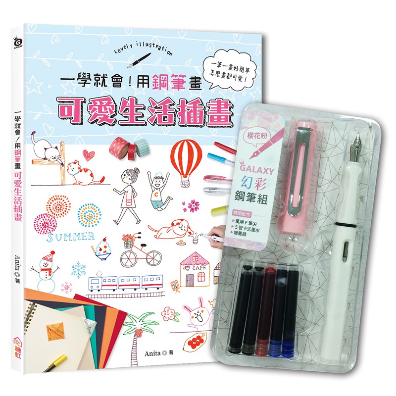 一學就會!用鋼筆畫可愛生活插畫 × 附【幻彩鋼筆組-櫻花粉】
