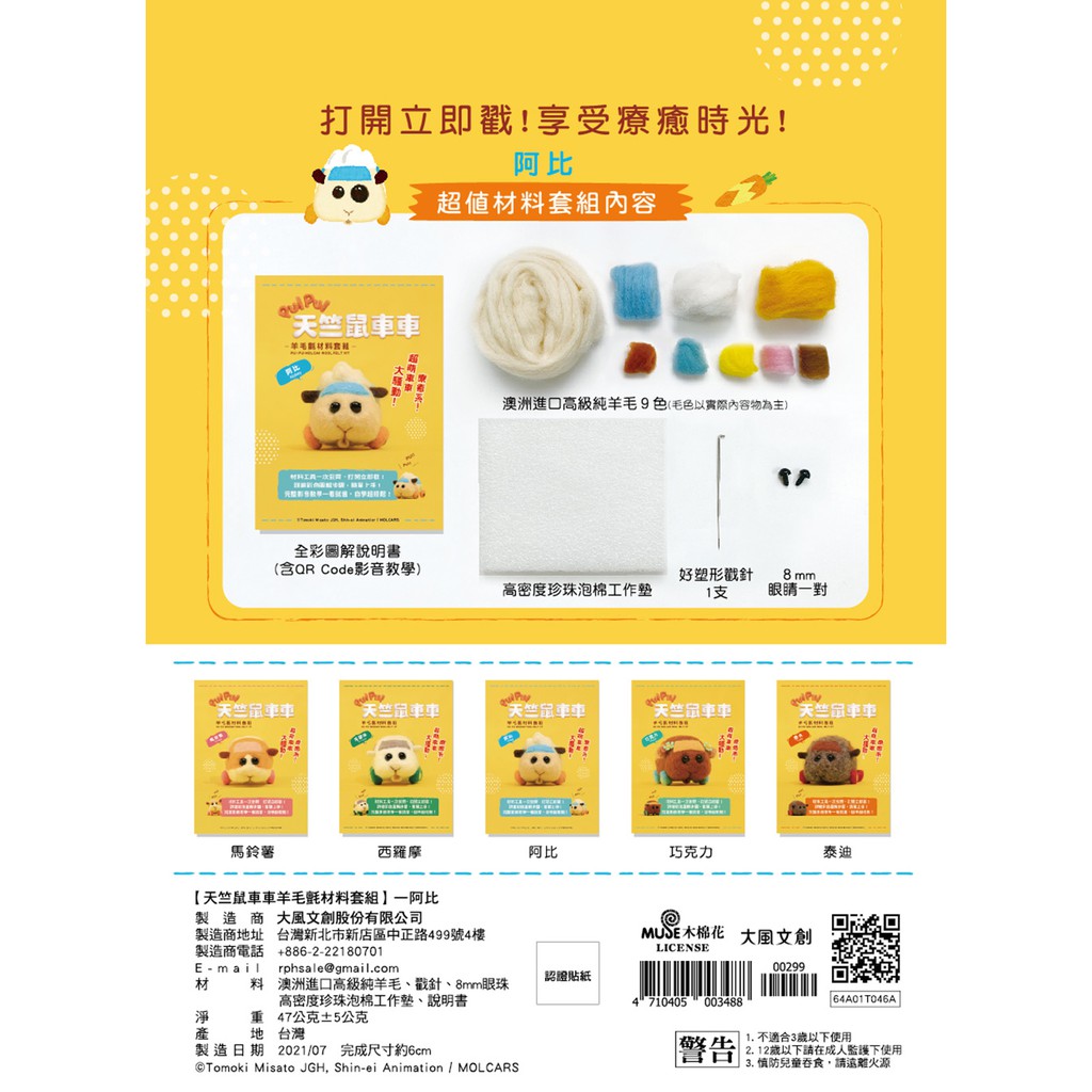 【正版授權+影片教學】《PUI PUI天竺鼠車車》羊毛氈材料套組-阿比 (含澳洲進口純羊毛+戳針+工作墊+8mm眼珠+說 / 大風文創wind wind