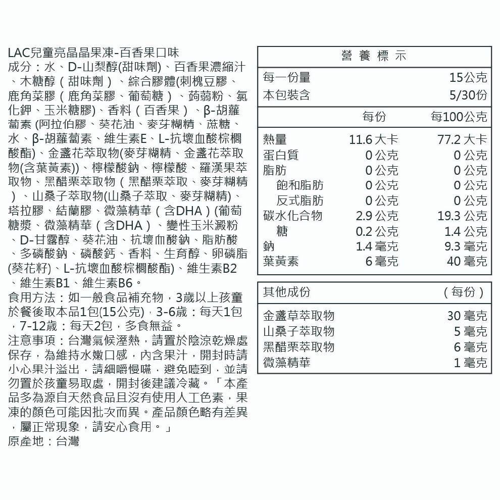 【LAC利維喜】兒童亮晶晶果凍30包-百香果口味(兒童葉黃素/金盞花/山桑果/β-胡蘿蔔素)