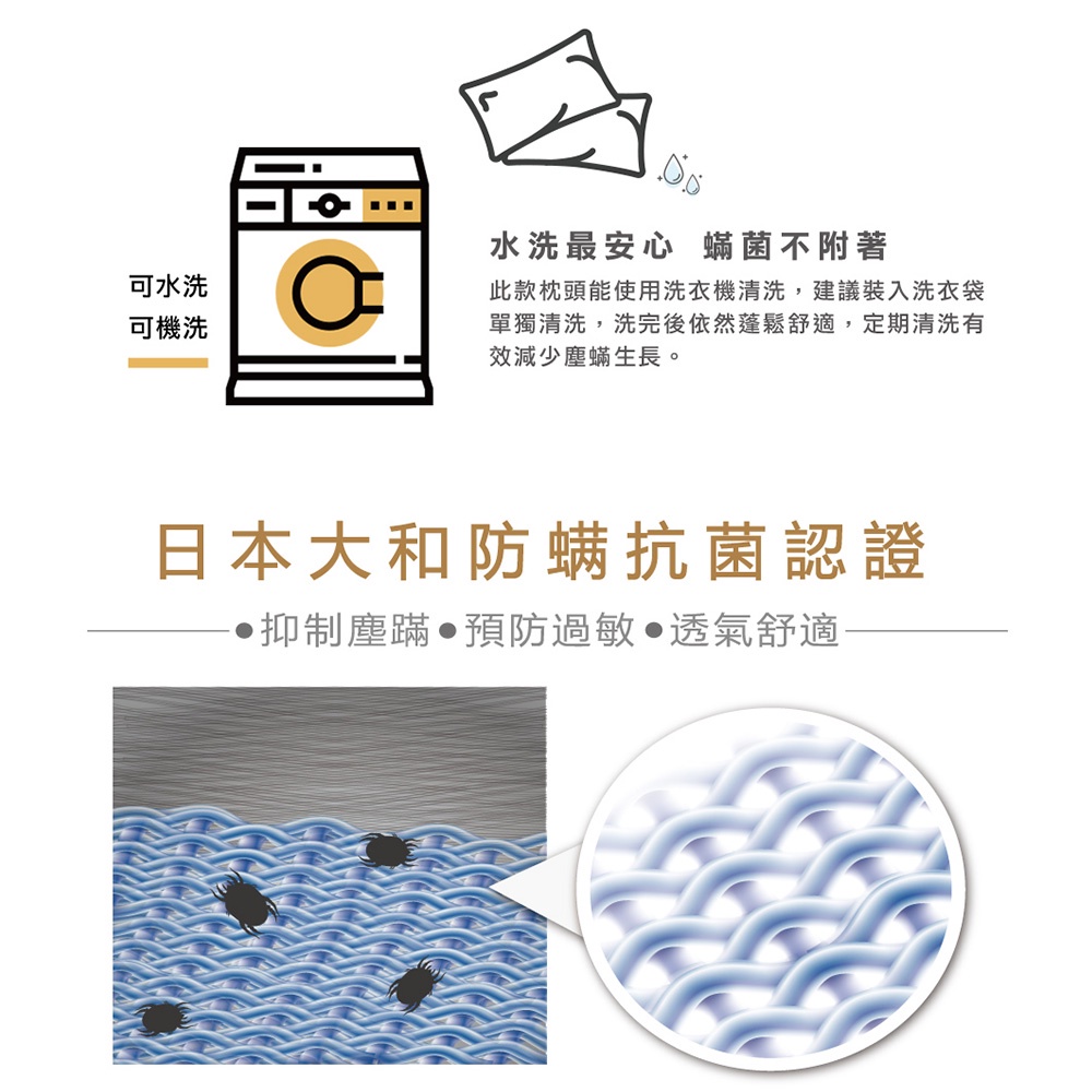 La Belle 日本防蹣抗菌 舒柔枕 43x73cm 可水洗 水洗枕 枕頭 可超取 格蕾寢飾