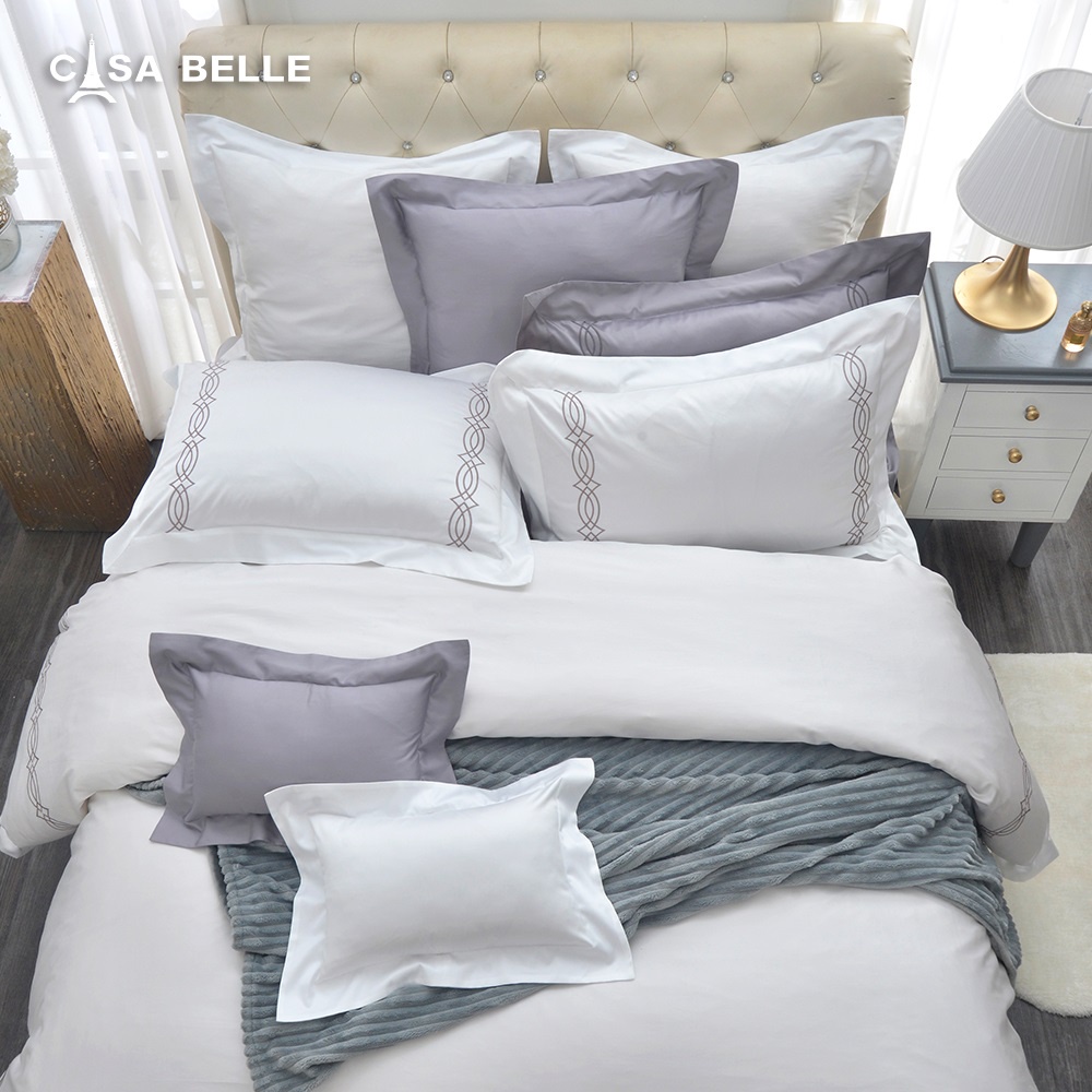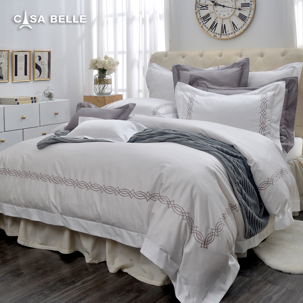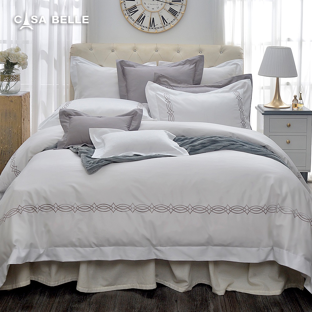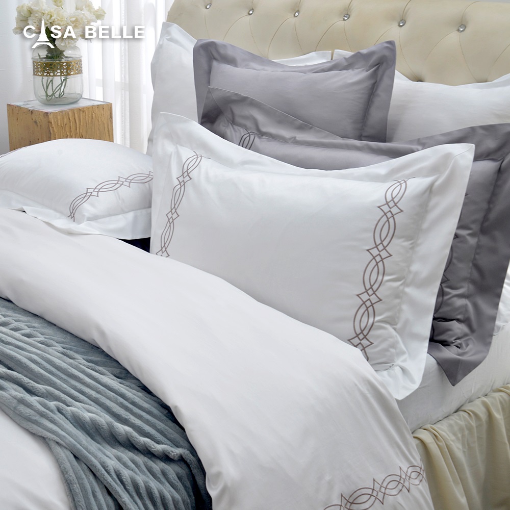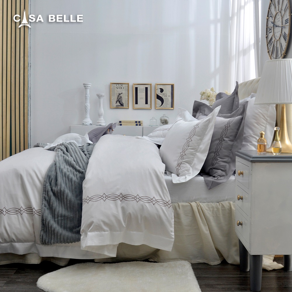 CASA BELLE 匹馬棉 兩用被床包組 防蹣抗菌 吸濕排汗 刺繡 雙/加/特 極線絮語 白色 格蕾寢飾