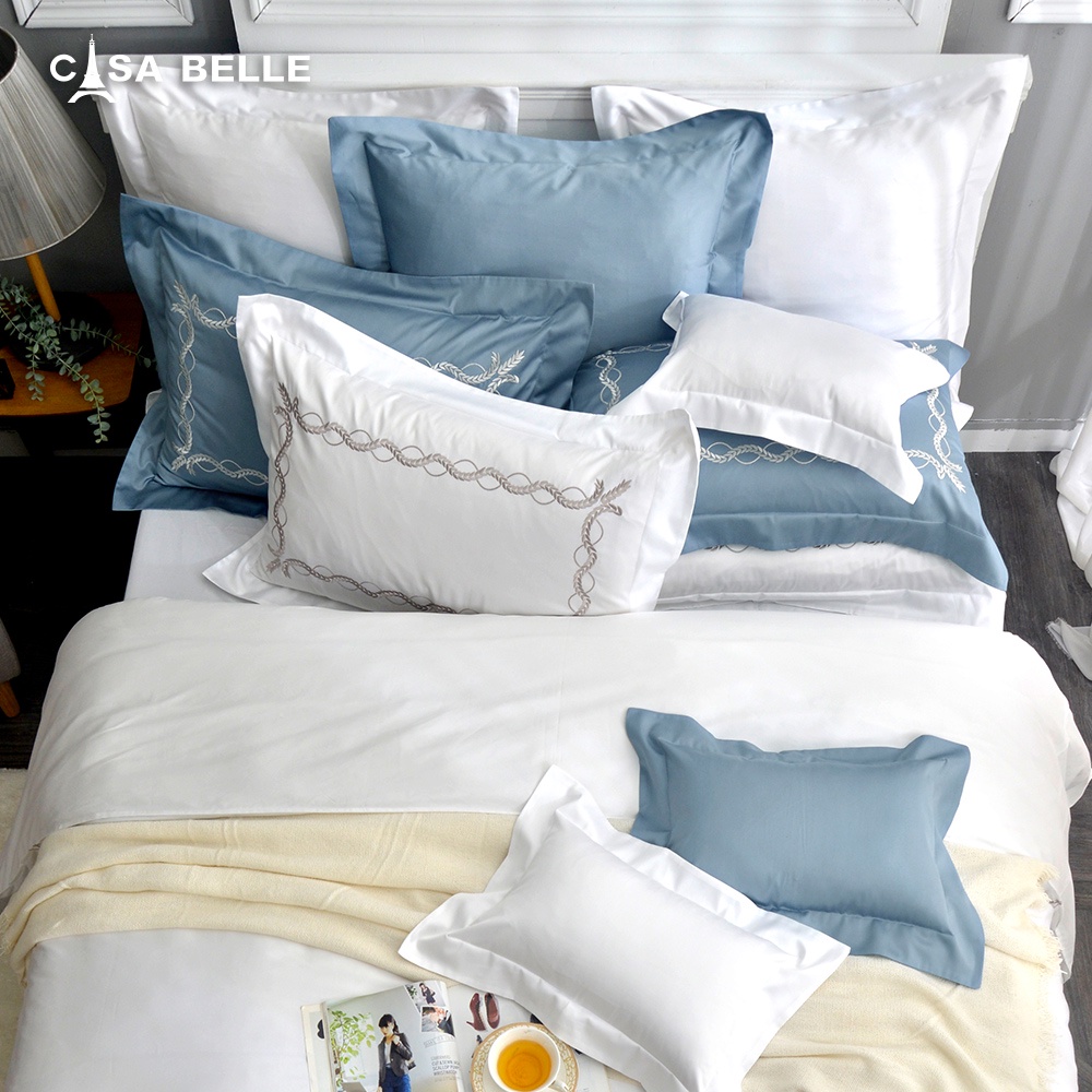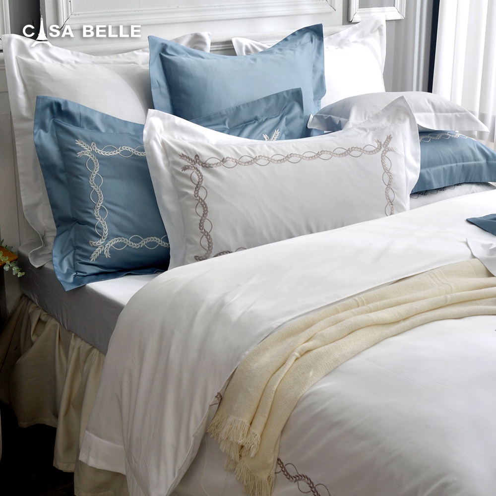 CASA BELLE 匹馬棉 兩用被床包組 刺繡 雙/加/特 極線花浪 白色 防蹣抗菌 吸濕排汗 可超取 格蕾寢飾