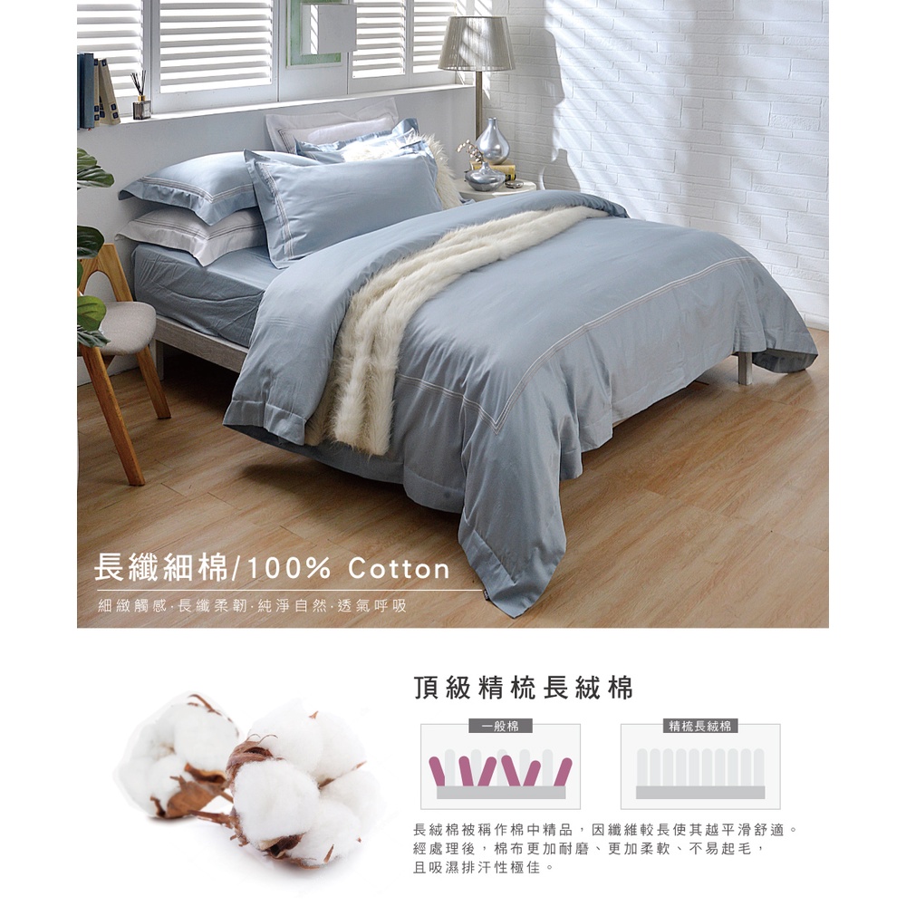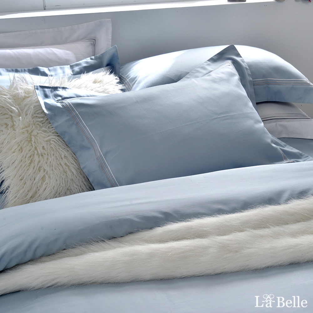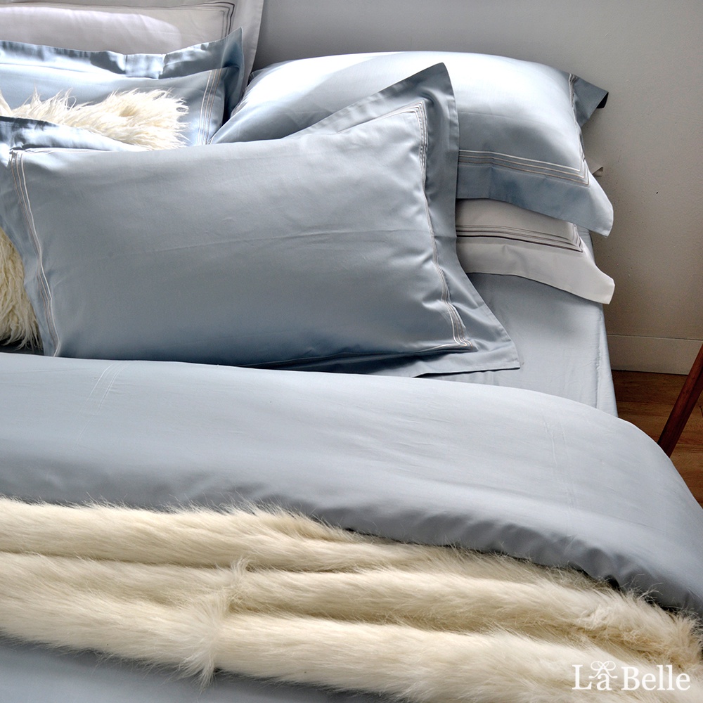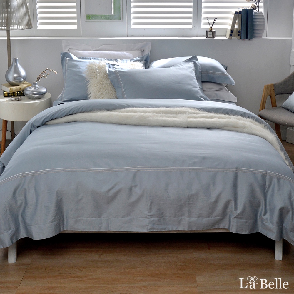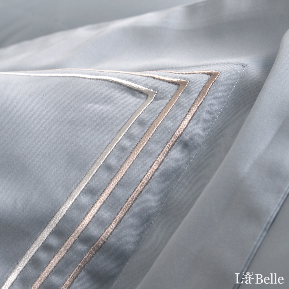 La Belle 600織長絨棉 被套床包組 刺繡 雙/加/特 典雅品味 霧灰藍 格蕾寢飾