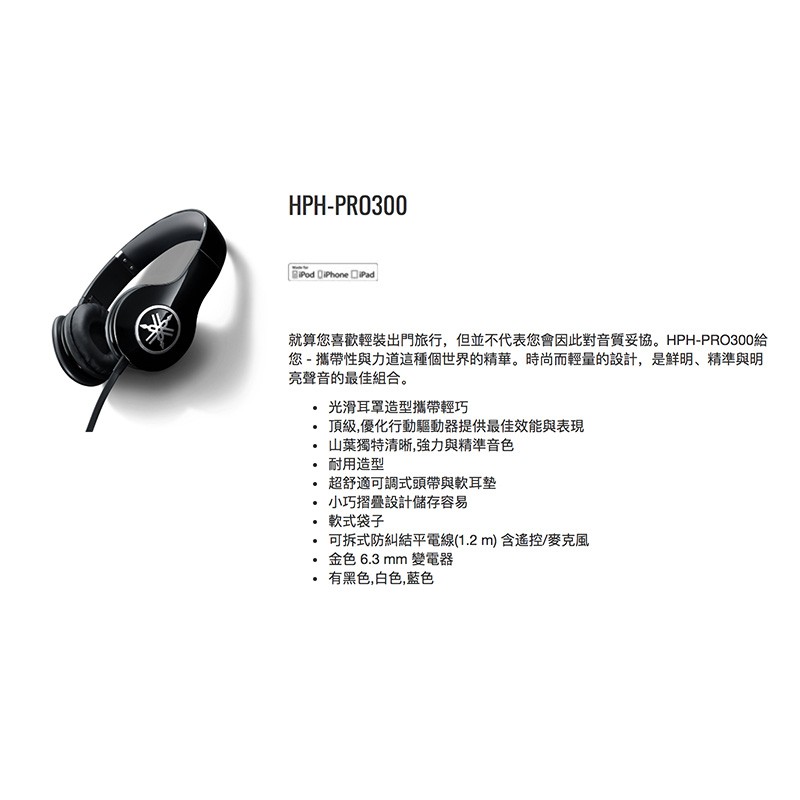 Yamaha HPH-PRO300 耳罩式耳機-黑色【全新福利品】