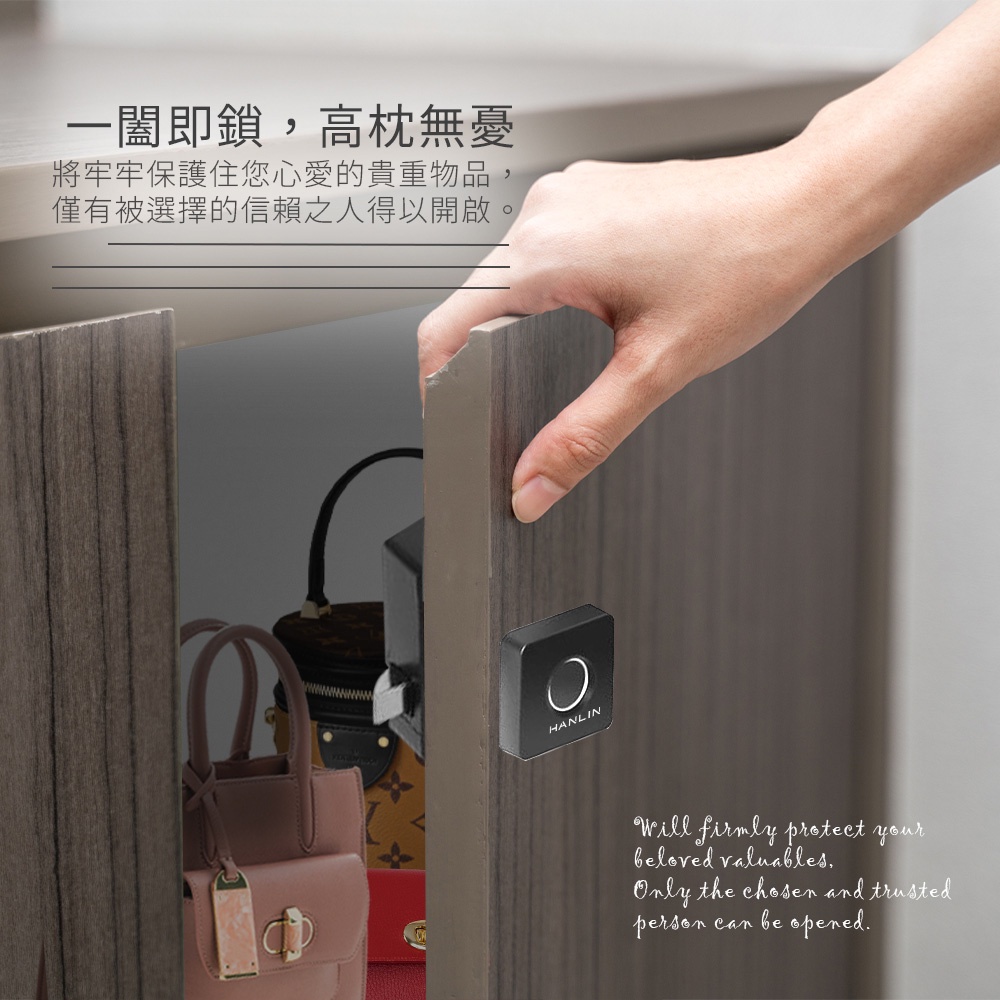 HANLIN-EBP02 加裝方型抽屜衣櫃指紋鎖 把手 抽屜 指紋鎖 方形 USB 解鎖