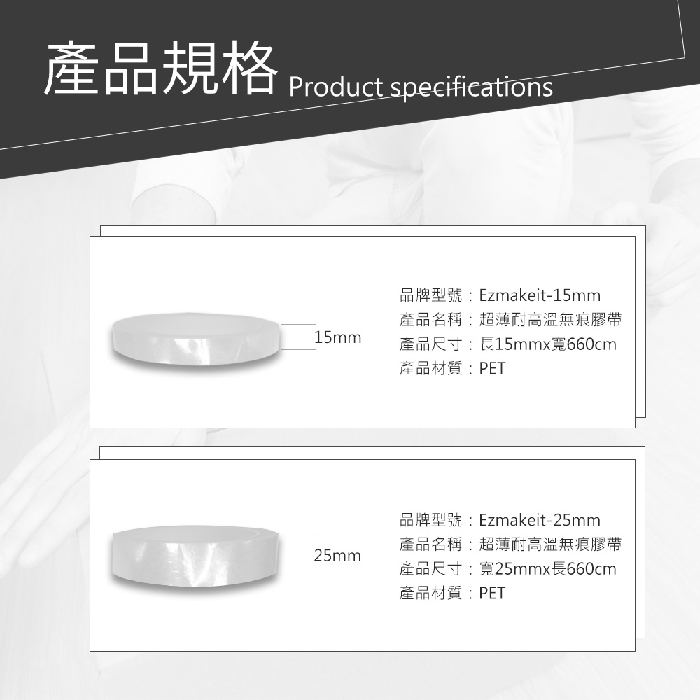 EZmakeit-PET15mm/ PET25mm 超薄耐高溫無痕膠帶 包裝 封裝 無痕 膠帶