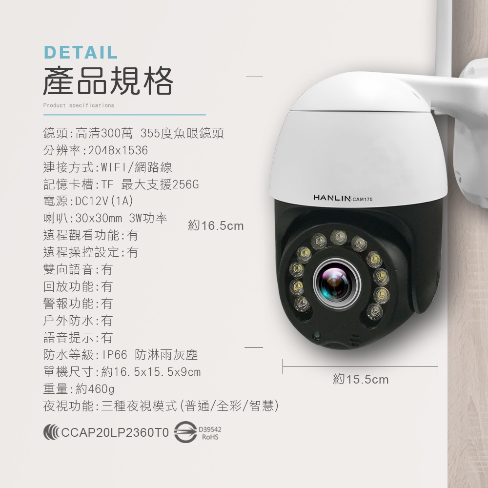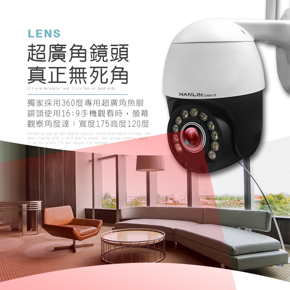 HANLIN-CAM175 超廣角監視器2K 高清 彩色 夜視 攝影機 WIFI網路監控 WIFI監視器 追蹤 呼叫對講