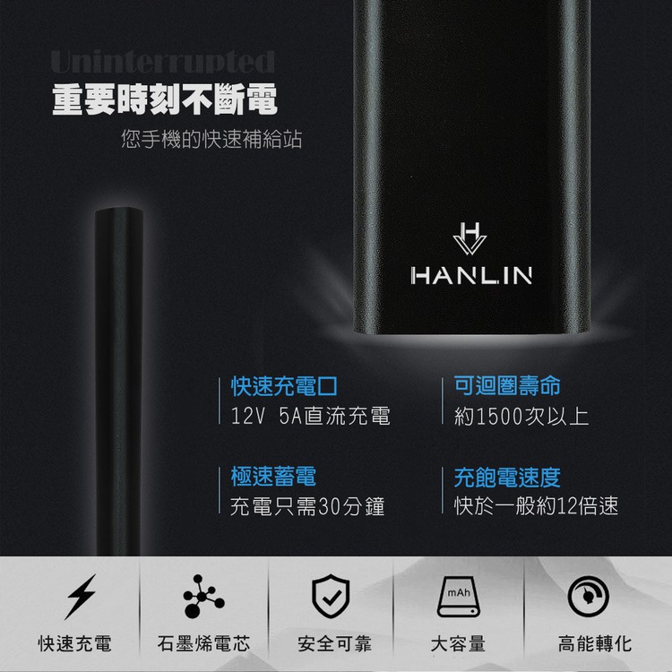 HANLIN- SMC1W 黑科技 30分快充石墨烯行動電源 手機 平版 快充 行動電源 USB