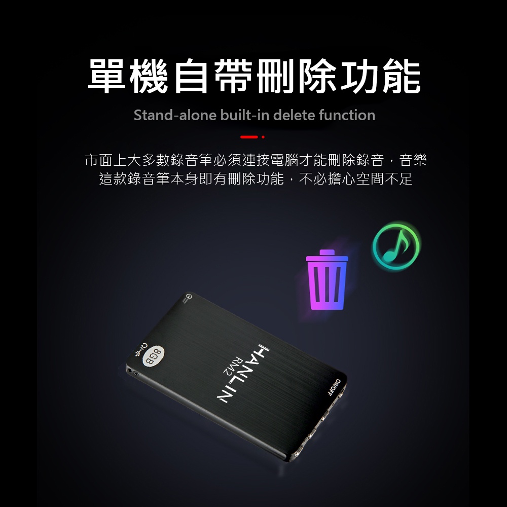 HANLIN-RM2 簡易迷你錄音卡錄音筆 8G -96小時 高清降噪 反霸凌 靜音 密錄 工作蒐證 簽約 談判