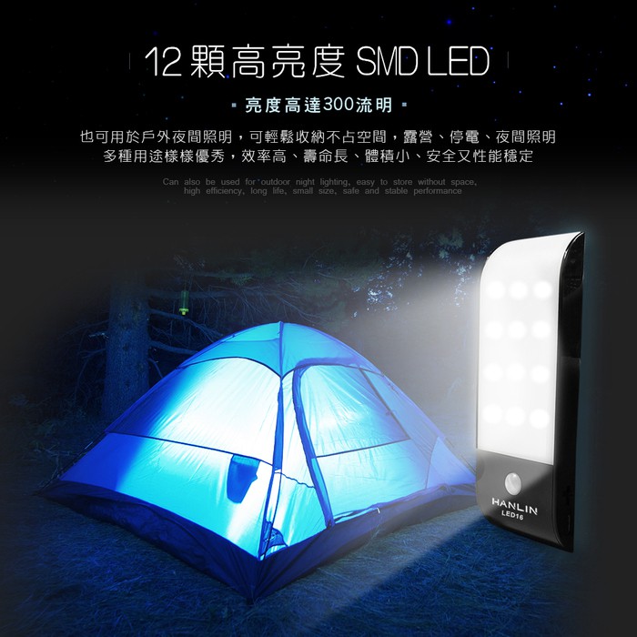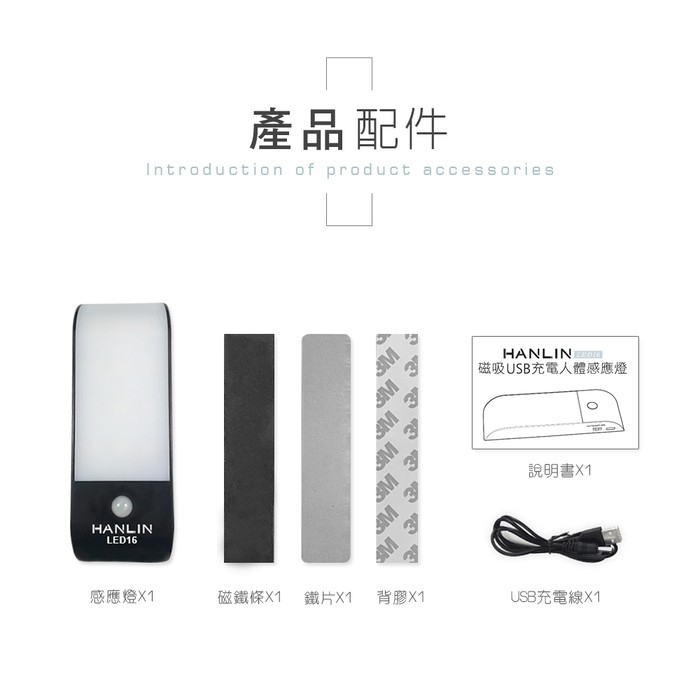 HANLIN-LED16 磁吸USB充電人體感應燈 USB 照明手電筒 壁懸掛 黏貼 小夜燈 夜間照明燈