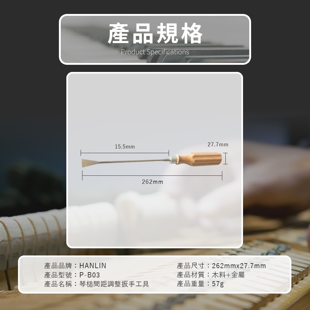 HANLIN-P-B03 琴槌間距調整扳手工具 鋼琴調音師專用 三角琴 直立琴通用