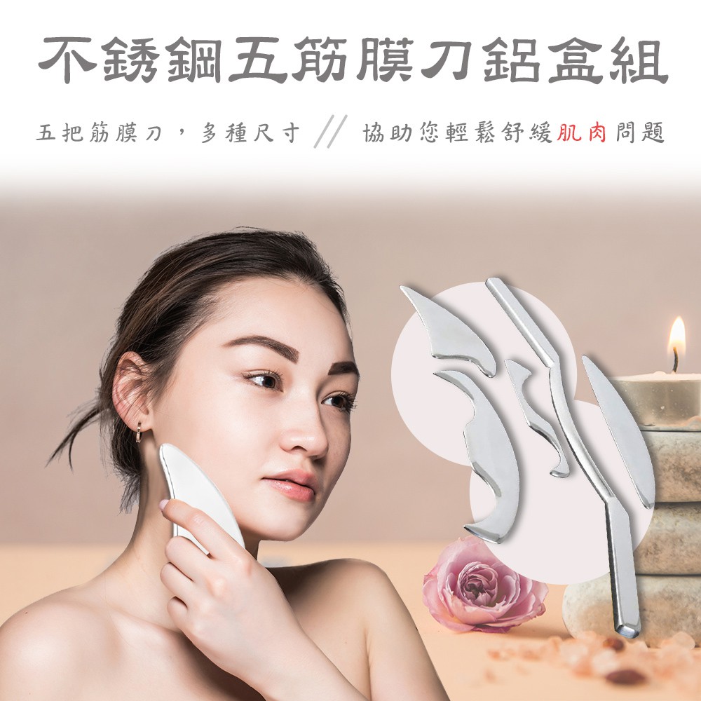 HANLIN-SP5D 不銹鋼五筋膜刀鋁盒組 不銹鋼 刮痧刀 舒緩疲勞 痠痛累 穴道按摩