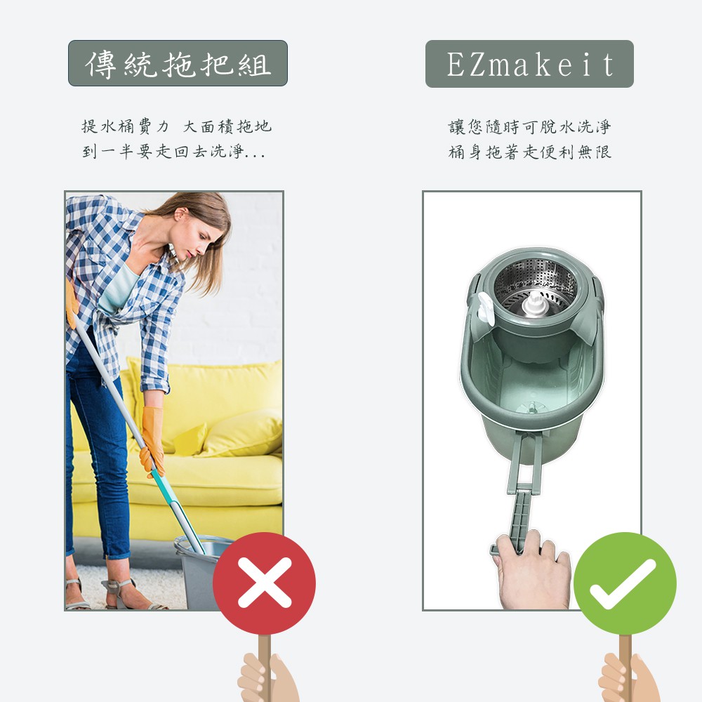 EZmakeit-TBA1 真快速洗脫旋轉拖把組 加厚帶輪 不鏽鋼 旋轉拖把 懶人拖把 不沾手拖把