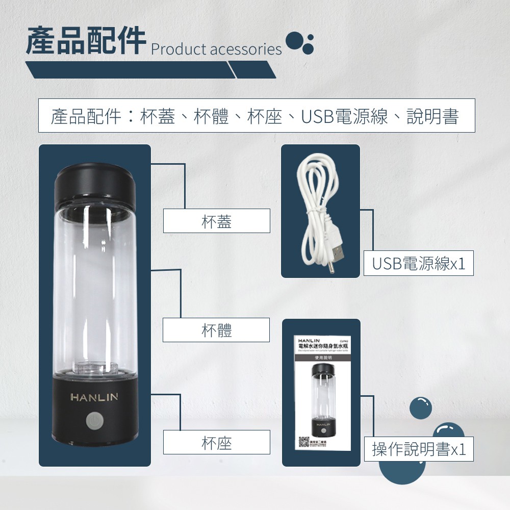 HANLIN-CUPH2 健康電解水隨身氫水瓶 USB 富氫水杯 氫水 保健電解杯 水素水生成器 富氫離子 太空杯
