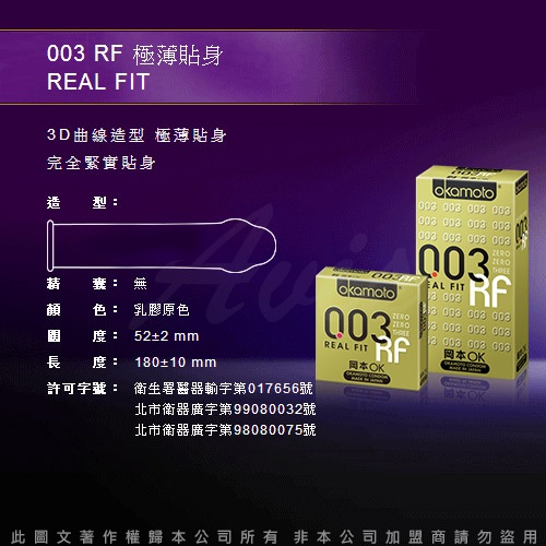 岡本 Okamoto 003極薄保險套經典組(18入裝 PLATINUM+RF+ALOE) 安全套 衛生套