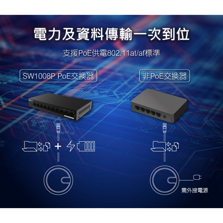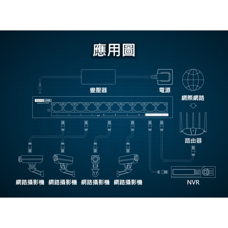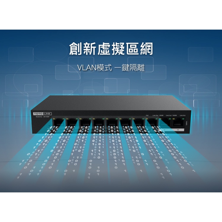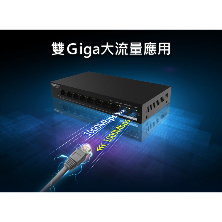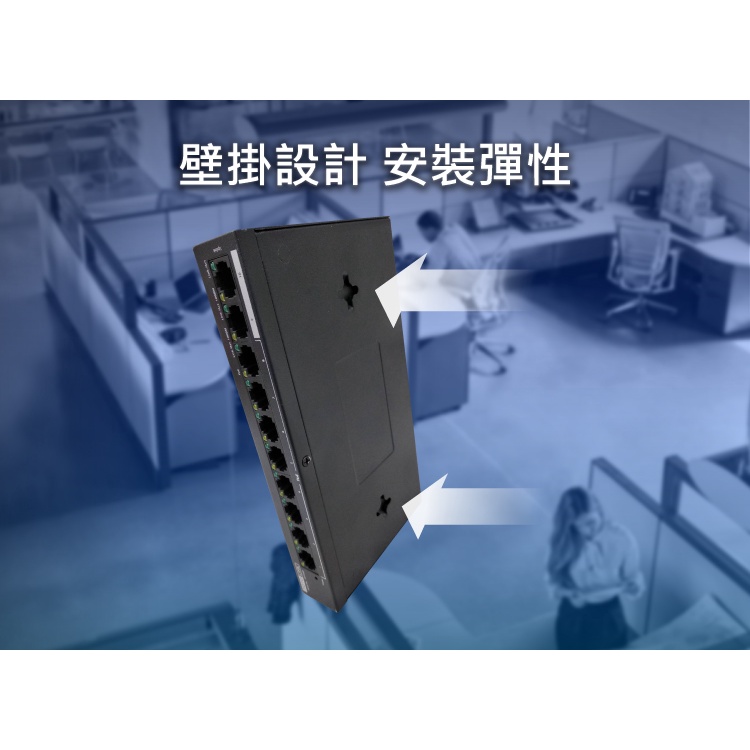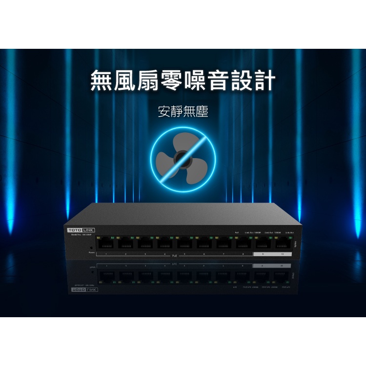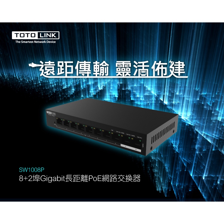 TOTOLINK SW1008P 8+2埠Gigabit⾧距離PoE網路交換器