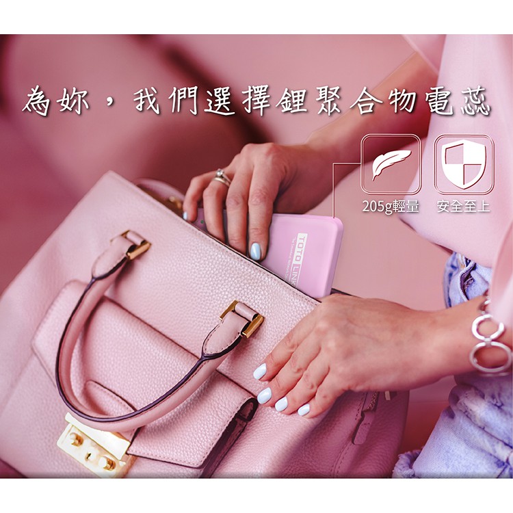 TOTOLINK TB10000P PD雙快充Type-C雙向行動電源-羅蘭粉 出清福利品(保固三個月)