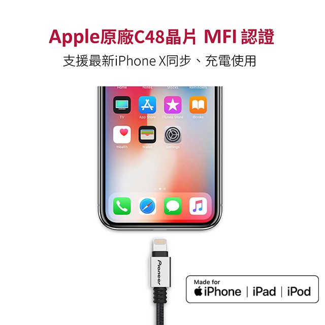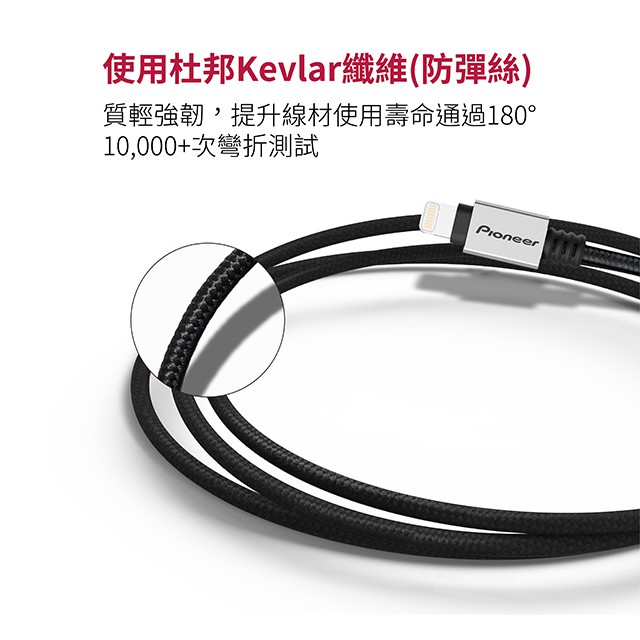 Pioneer Lightning傳輸線 APPLE認證 (APS-iLA2)-2M【贈精緻皮套】