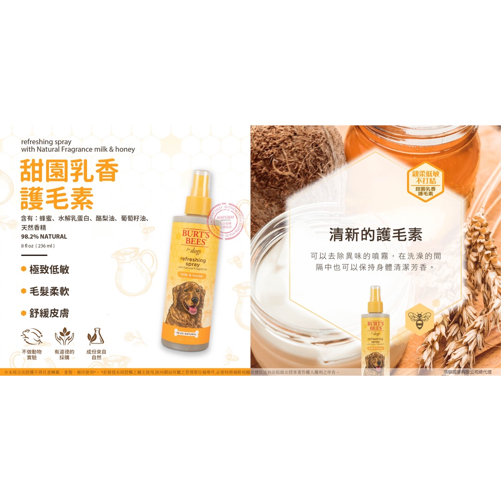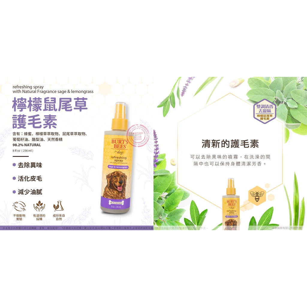 BURT'S BEES蜜蜂爺爺 【花果蜜芳護毛素/236ml】寵物護毛素 狗狗護毛素 犬用護毛素 護毛素 噴霧護毛素