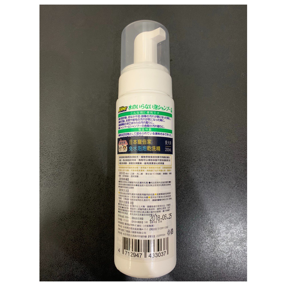 JOYPET日本寵倍家 【泡泡乾洗精】200ml 寵物乾洗精 狗狗乾洗精 犬用乾洗精 貓咪乾洗精 貓咪免水洗乾洗精