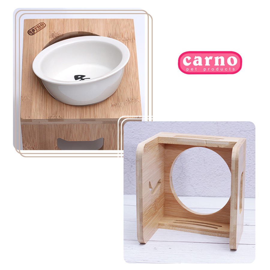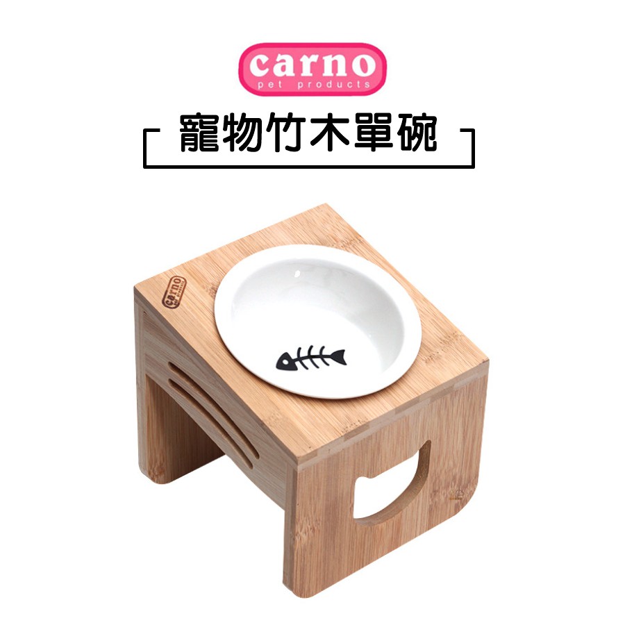 Carno卡諾 原色竹木架陶瓷單碗 寵物碗 狗狗碗 貓咪碗 單碗 木質單碗 貓咪單碗 犬用單碗 碗