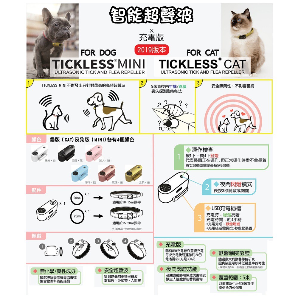 [免運] TickLess 充電版(遠離壁蝨 跳蚤) 一年保固 超聲波 寵物 安全 無藥性 無毒 幼犬至成年