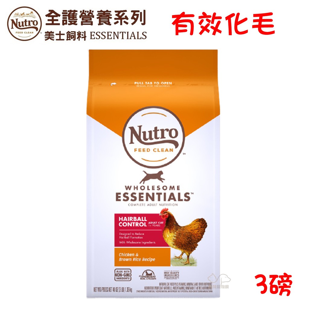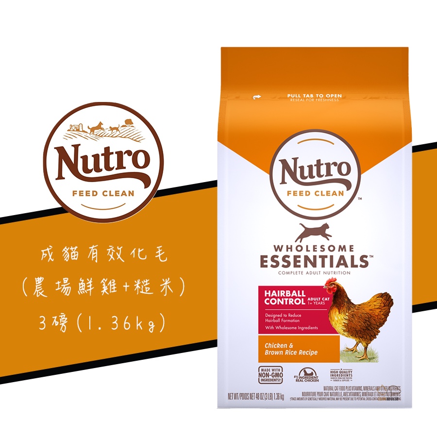 美士 Nutro《成貓有效化毛配方-成貓/雞肉+糙米》3磅 成貓飼料 1-7歲成貓飼料 化毛貓飼料