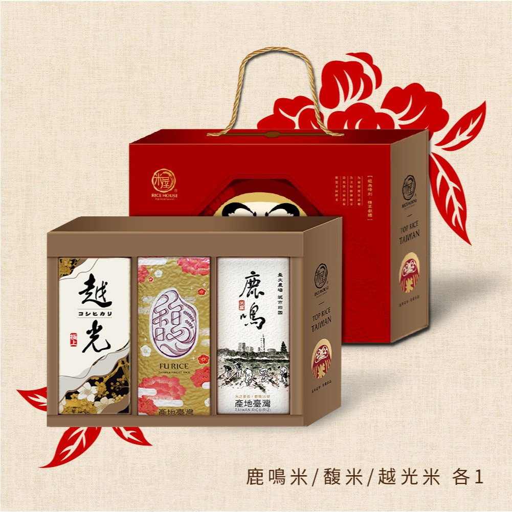 《米屋》紅運高照手提禮盒(越光米/鹿鳴米/馥米)(300g/包x3) 冠軍米禮盒 新鮮現碾 香Q美味 送禮首選