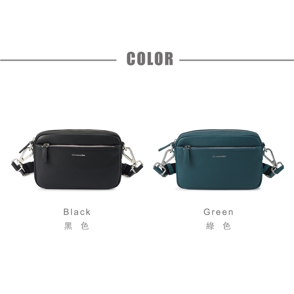 Crocodile 鱷魚皮件 男側背包 真皮包包 橫式斜背包(S) Rocky2.0系列 0104-08109-黑綠兩色