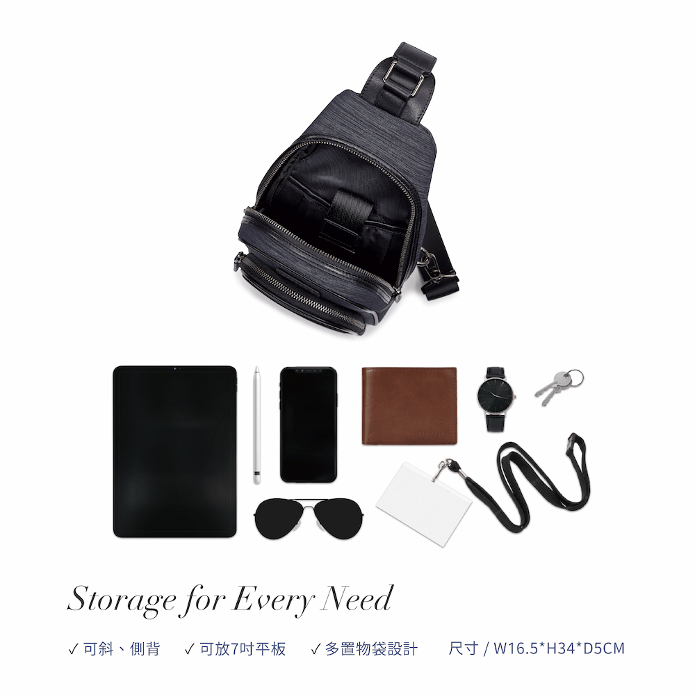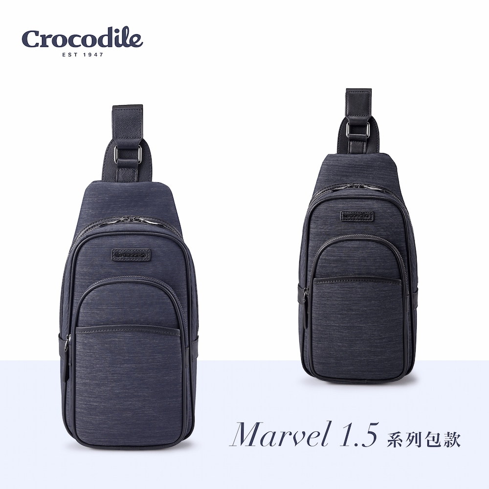 Crocodile鱷魚皮件 男單肩背包 直式斜背包 可放7"平板 Marvel1.5系列-0104-07652-黑藍兩色