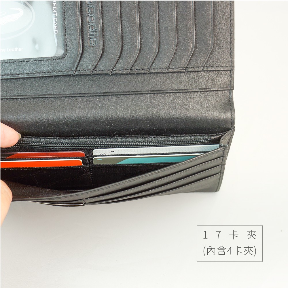 Crocodile 鱷魚皮件 真皮長夾 男皮夾 拉鍊零錢袋 男夾 17卡/1窗 Wind系列 0103-5910-黑咖
